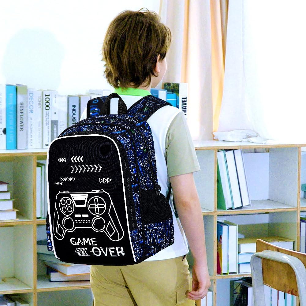 • Laptop Backpack Set: 3-piece design, including a gamer backpack (17"x 13"x 6.5" Inche), a lunch box (9"x 8.5"x 3.5" Inche) and a pencil bag, reasonable match to meet your child's daily life.