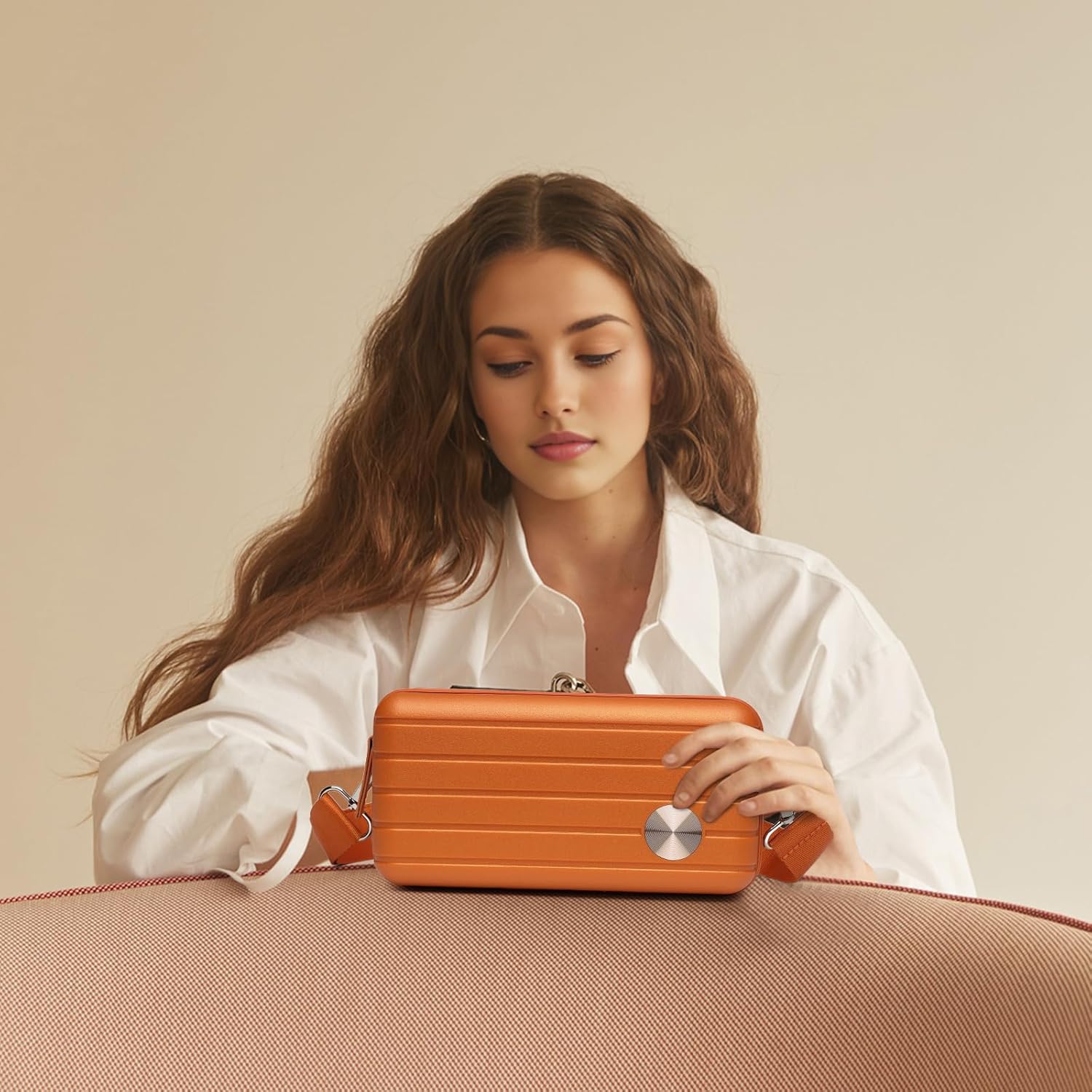 Somago Hard Shell Suitcase Handbag with Adjustable Strap Mini Cosmetic Handbag Cell Phone Purse Bag for 6.9" Shoulder Bag(Sunset Orange)
