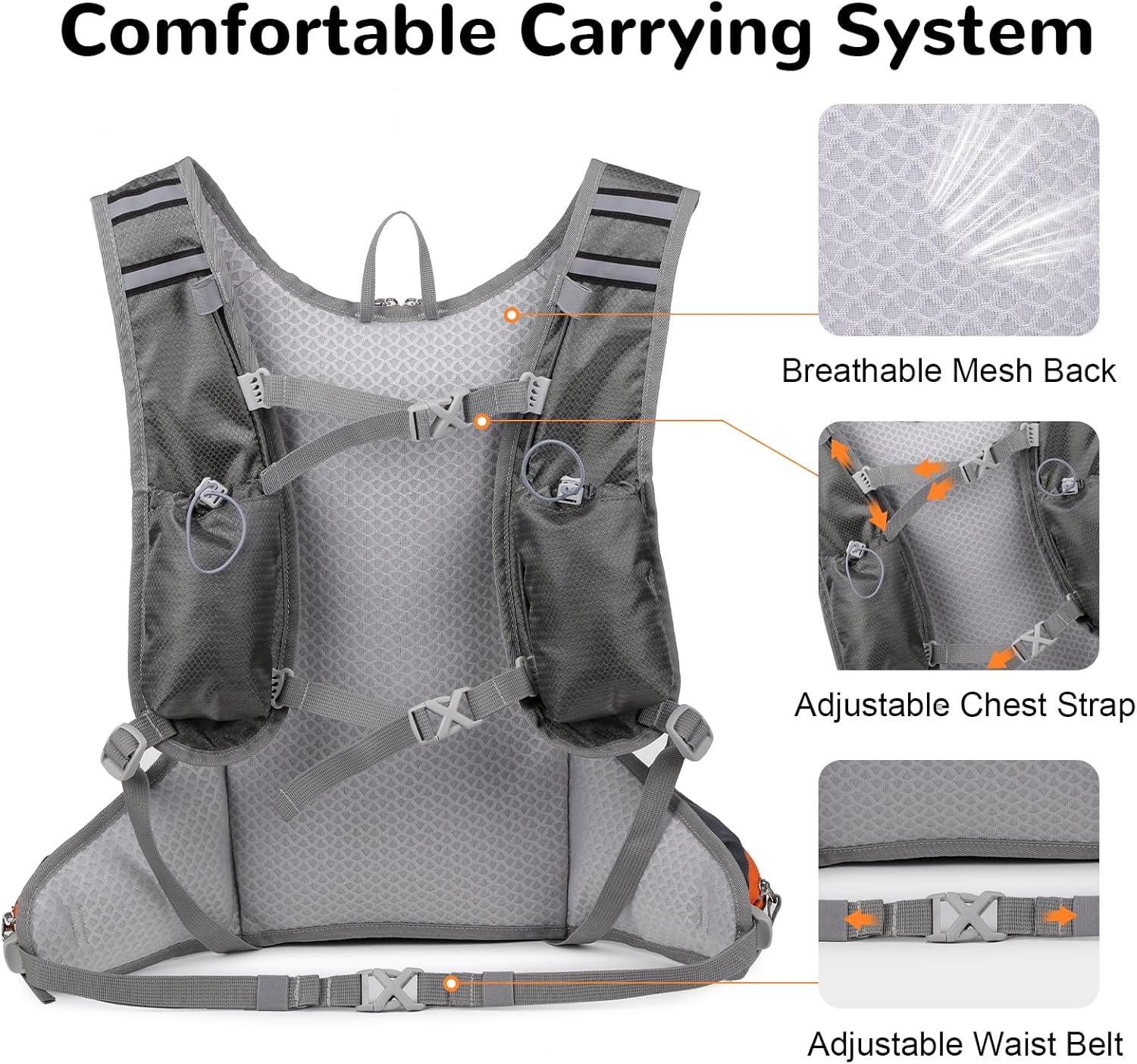 • Large Running Vest: This 12l backpack has an innovative shoulder strap design, the drawstring pockets on both sides is perfect for phone or other valuables. Internal hydration reservoir sleeve with tube exit port offers you easy access to your water supply (reservoir not included).