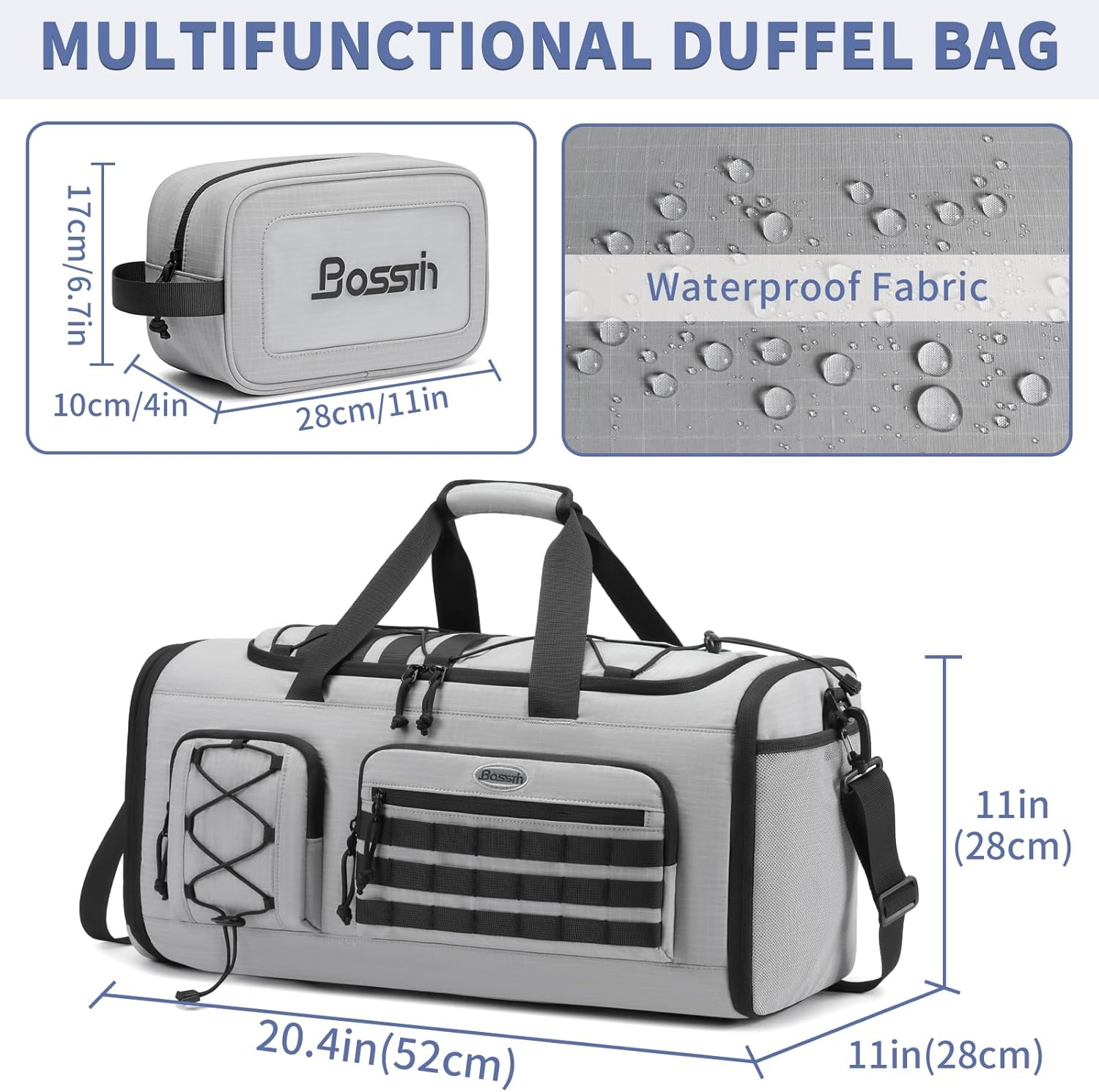 Bosstin Gym Bag for Men & Women,45L Travel Duffle Sports Duffel Bag Gym Weekender Overnight Backpack with Shoe Compartment (GREY CHECKERED)