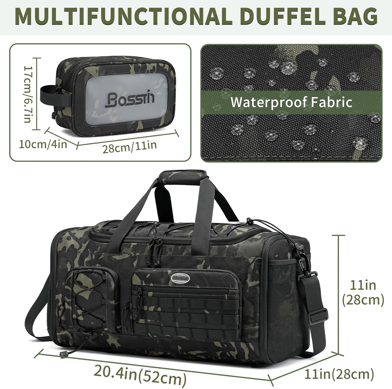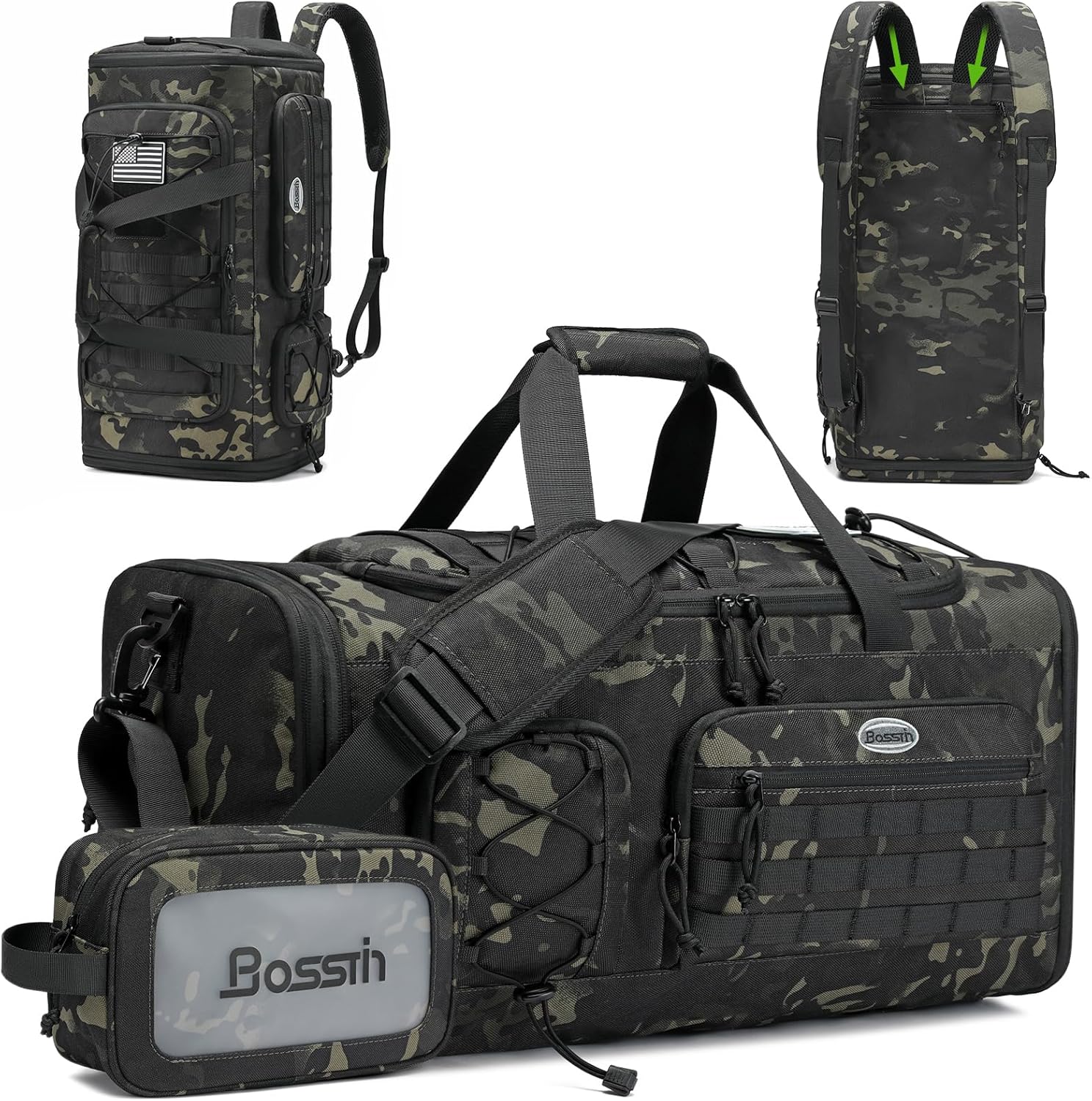 Bosstin Gym Bag for Men & Women,45L Travel Duffle Sports Duffel Bag Gym Weekender Overnight Backpack with Shoe Compartment (GREEN CAMOUFLAGE)