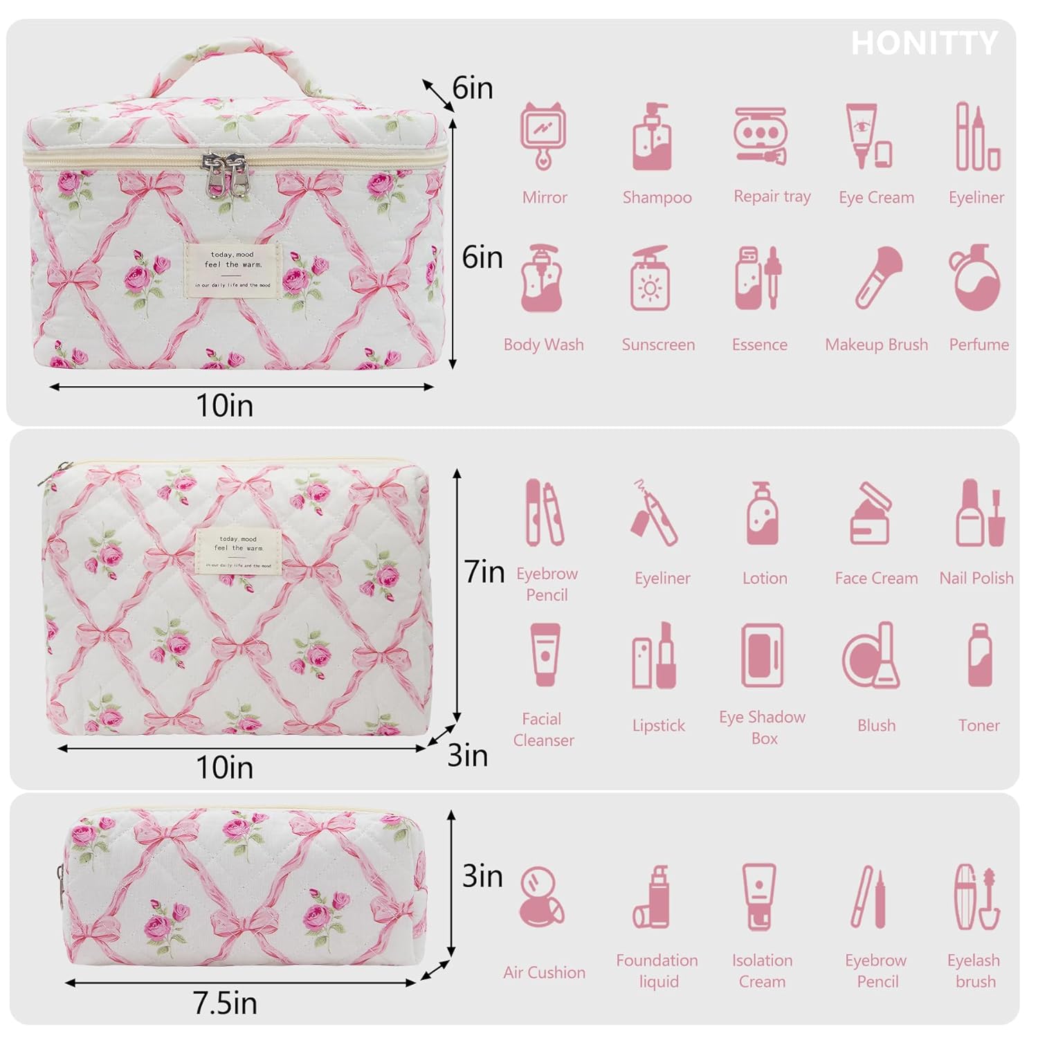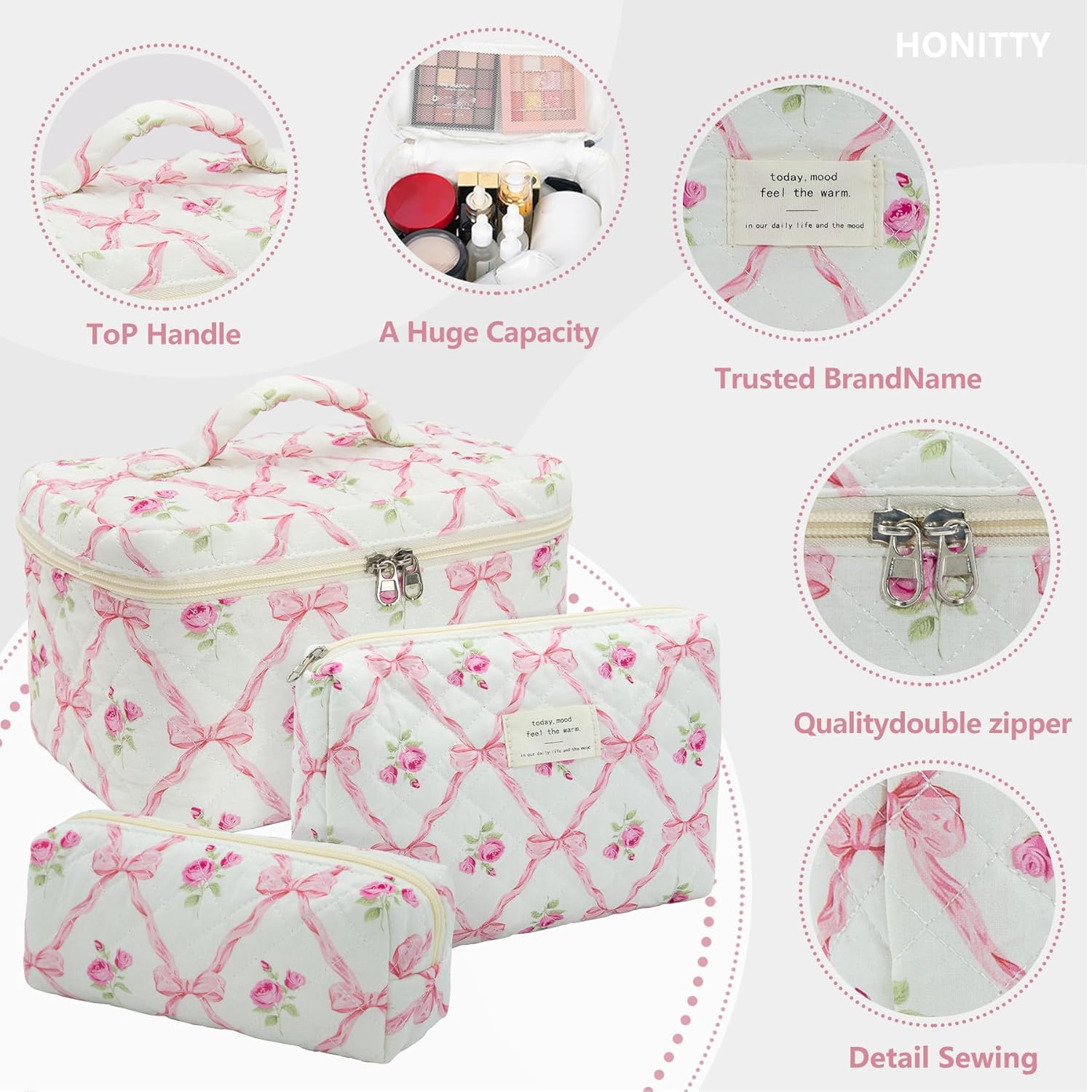 Makeup Bag,Quilted Cosmetic Bag,Large Floral Make Up Bag for Women,Cotton Makeup Bag Set,Flower Travel Toiletry Bag