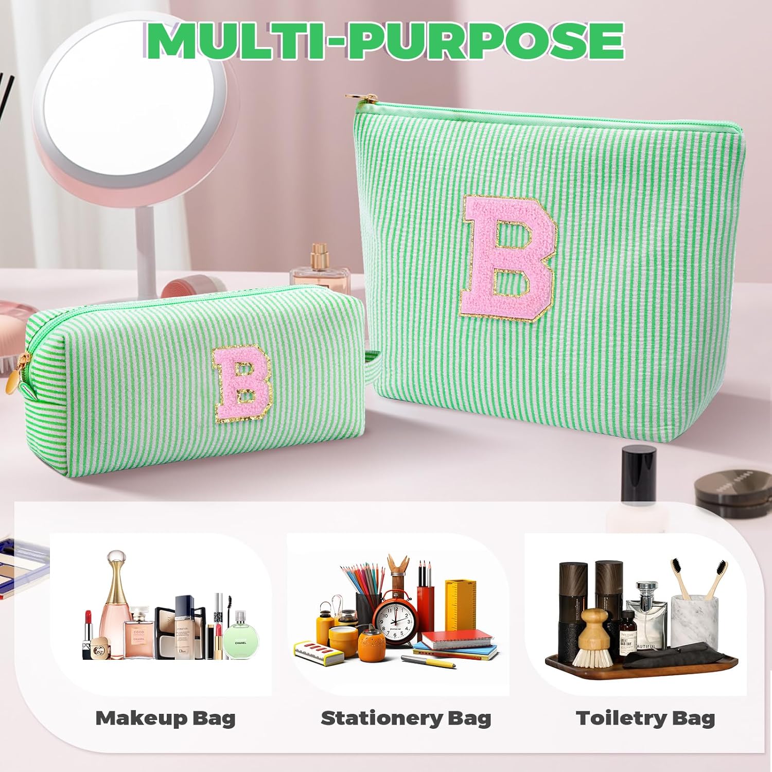 Bridesmaid Gifts Wedding Day - Bridal Shower Gifts,Maid of Honor Gifts,Initials Makeup Bag Set Cosmetic Bag - Green,B