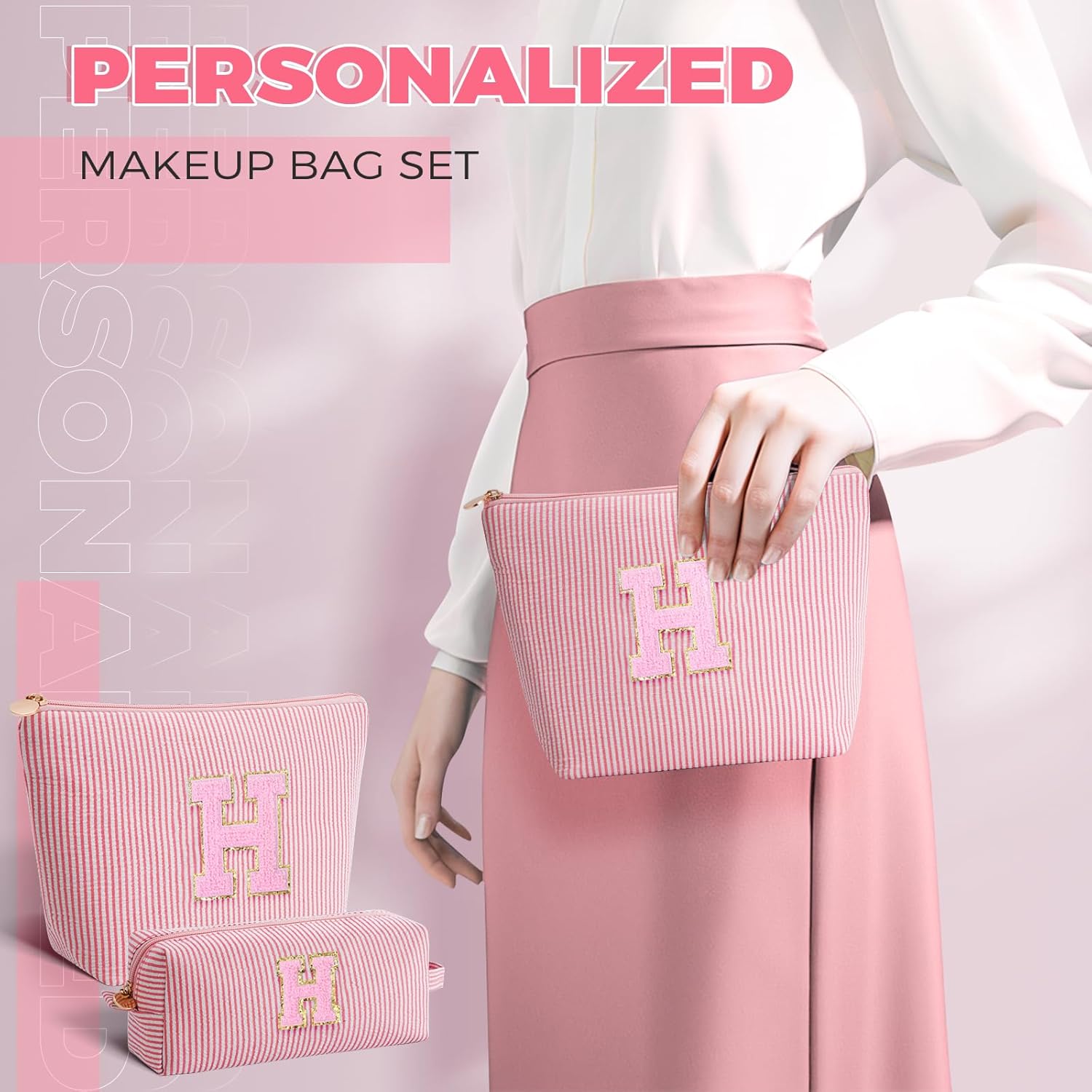 • PERSONALIZED INITIALS DESIGN: Each letter holds unique symbolism, transforming this makeup bag set into both a meaningful keepsake and personalized gift. Crafted for sentimental value and everyday use