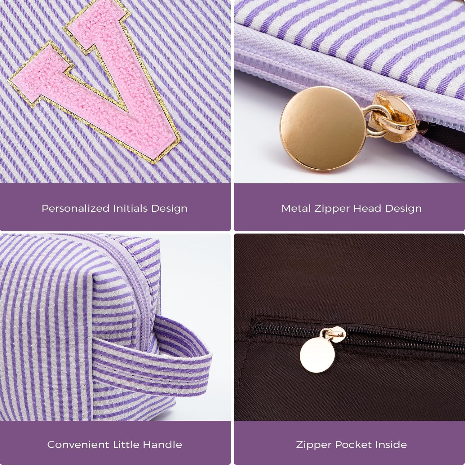 Personalized Makeup Bag for Women Girls - Fashion Cosmetic Bag Trendy Travel Toiletry Bag with Initials Letter - Teen Gifts - Lavender,V