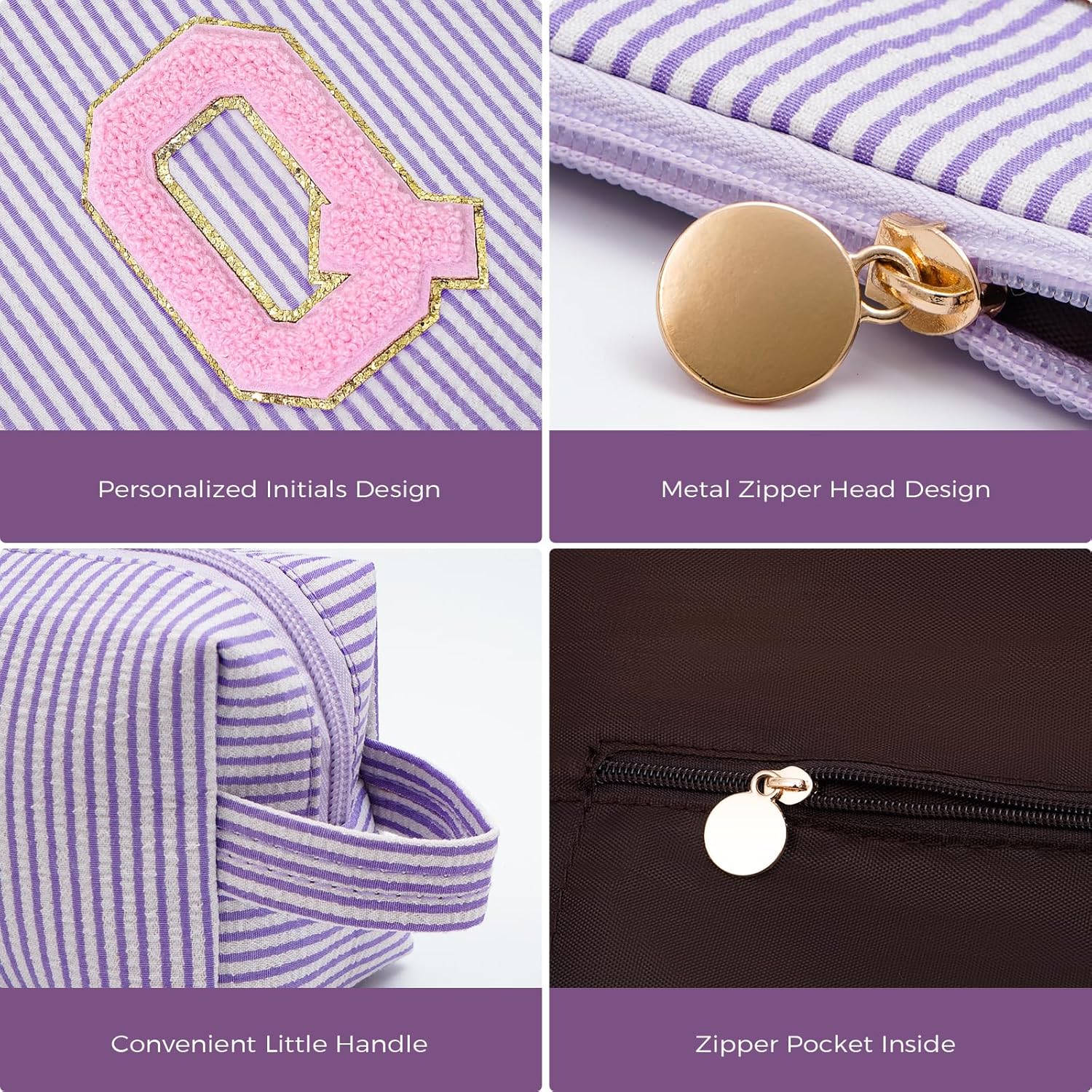 Personalized Makeup Bag for Women Girls - Fashion Cosmetic Bag Trendy Travel Toiletry Bag with Initials Letter - Teen Gifts - Lavender,Q