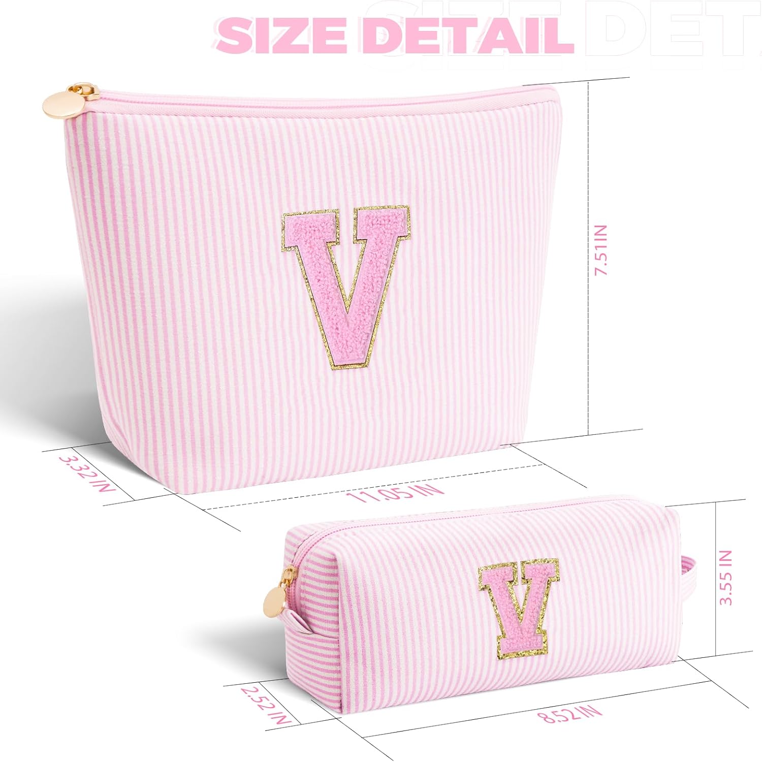 Personalized Makeup Bag for Women Girls - Fashion Cosmetic Bag Trendy Travel Toiletry Bag with Initials Letter - Teen Gifts - Pink,V