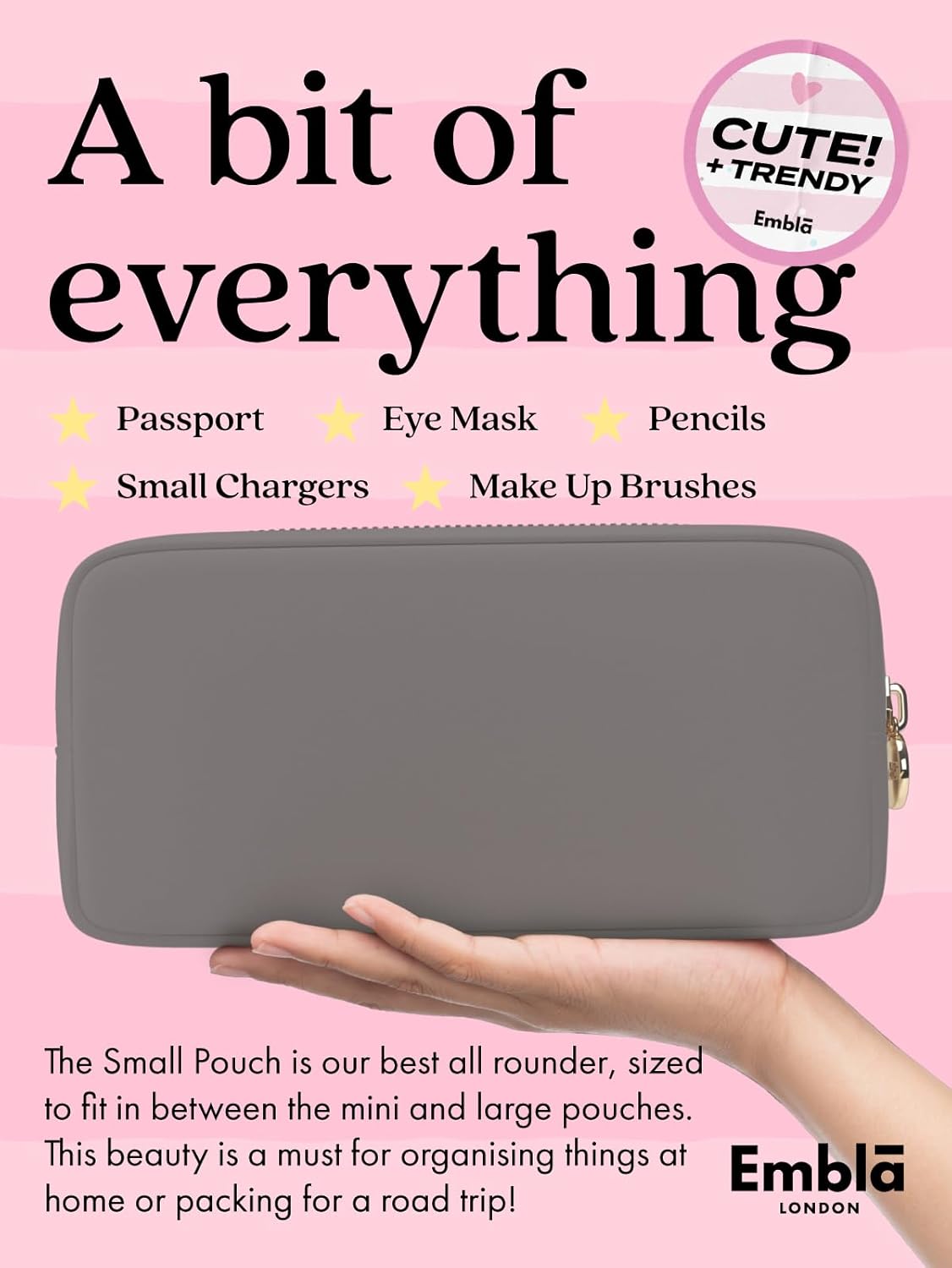 • TRAVEL + CUTE = EMBLA! - Our bags are THE trendy & preppy storage gifts! Simply pick your size (Mini, Large or XL) and start organizing all of your makeup, lipstick, hair stuff, snacks and jewelry accessories! Or use it as a clutch handbag, makeup brush holder, skin care bag, zippered carry case or coin purse wallet!