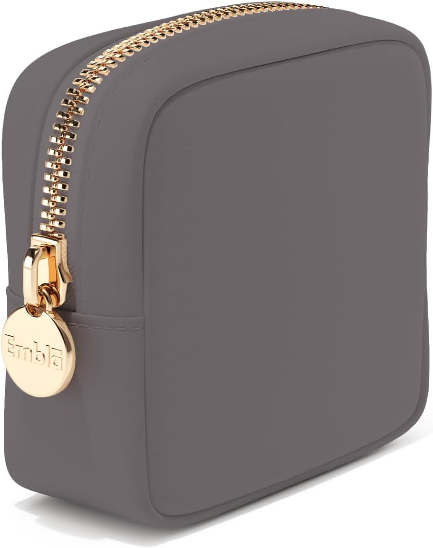 Embla Makeup Bag Travel Cosmetics Pouch and Toiletry Bag, Nylon Zipper Pouch Purse, Cute Make Up Organizer Storage Tote for Women Girls, Waterproof Travel Skincare Case, Small Makeup Bags, Grey