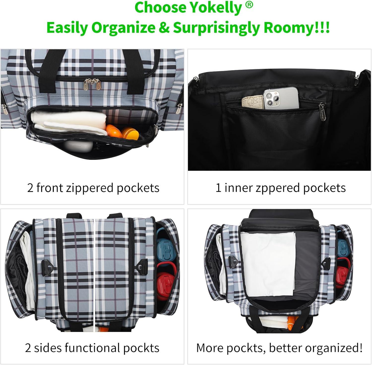• MULTI POCKETS: Travel duffel bag have up to 6 compartments, 1 main compartment, 2 full size side pockets and 2 extra large front pocket, 1 inner pocket for personal belongings.