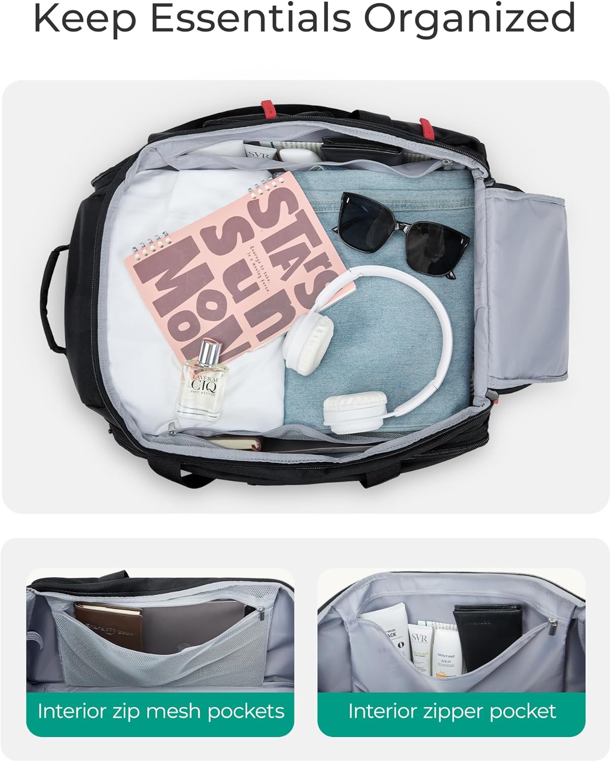 • Airline-Approved Carry-On Bag with Premium Convenience – Designed to fit overhead bins, this compact yet roomy travel duffel bag eliminates checked luggage fees and wait times, making it the ultimate carry on bag for weekend getaways or extended trips