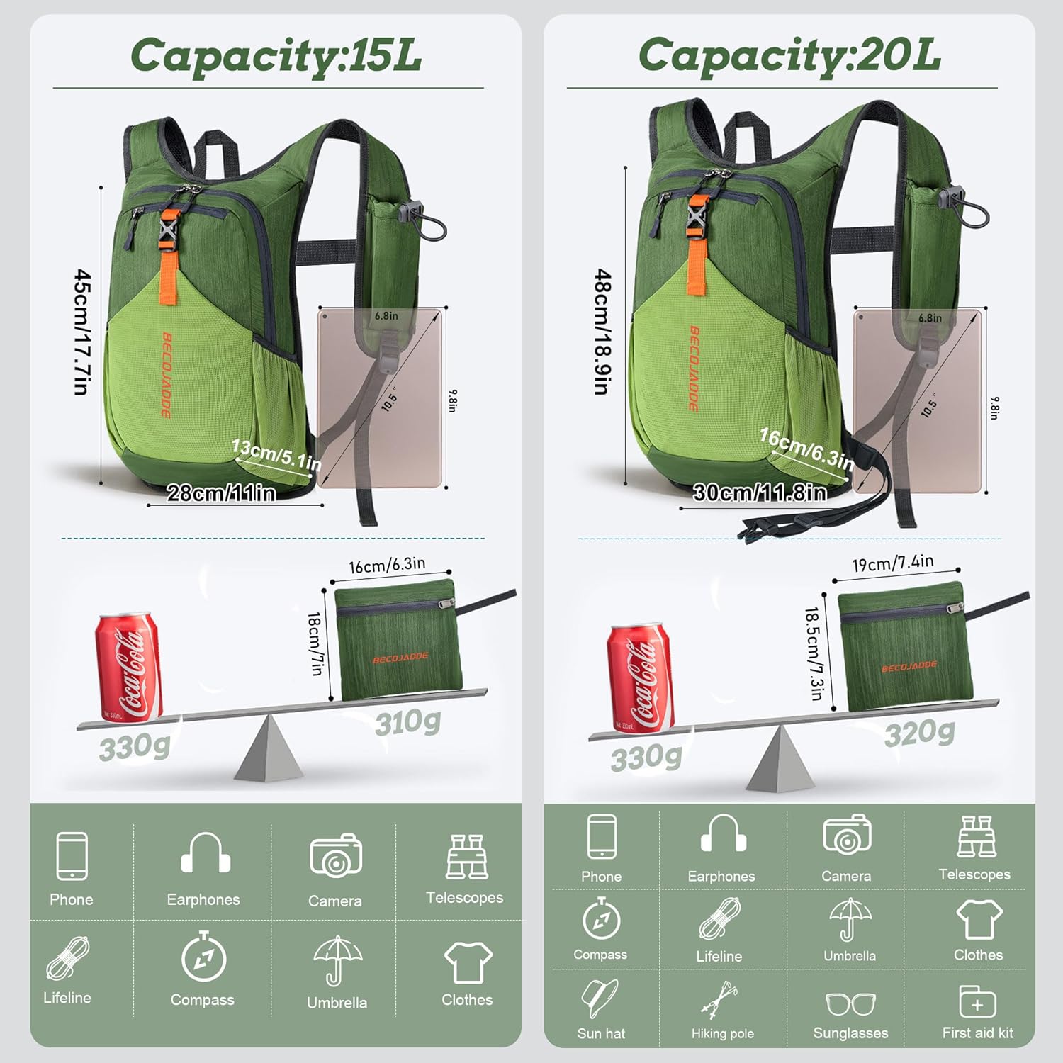• Durable and Packable Backpack: Made from tear-resistant, scratch-resistant fabric, this hiking bag can be easily folded into its own zippered pocket. The mini backpack has unfolded dimensions of 17.7 in x 11in x 5.1in; folded dimensions of a compact 7in x 6.3in.