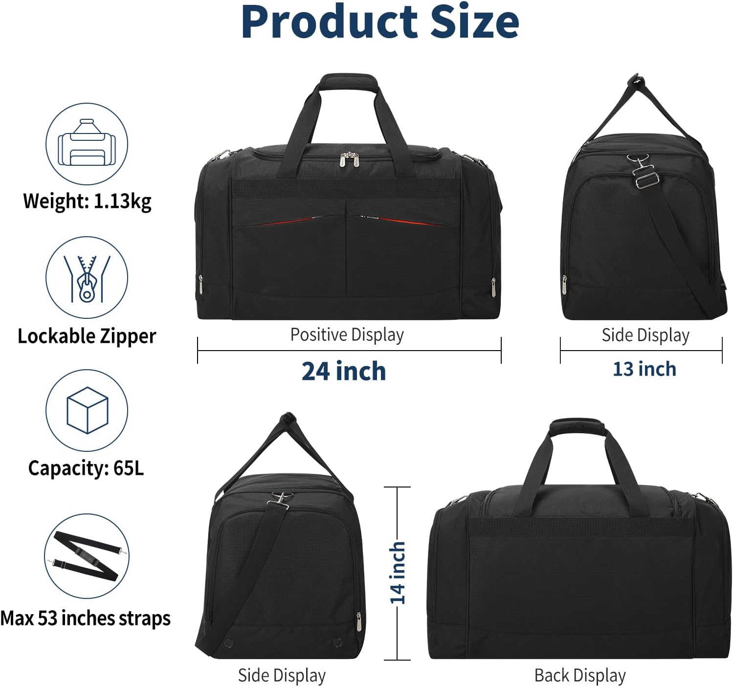 • Amazingly Spacious: The mens gym bag measures 24 x 13 x 14 inch with 65L capacity. It's really a roomy, fashionable, no-worry duffle bag that hold all your essential items.