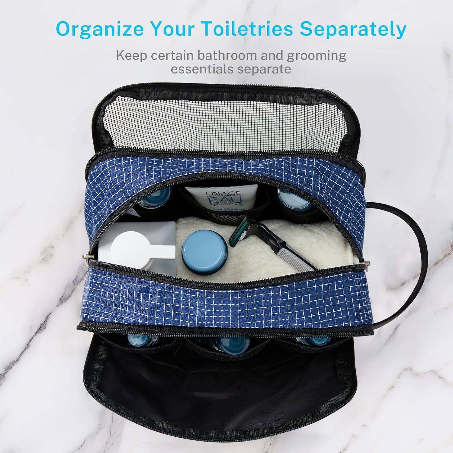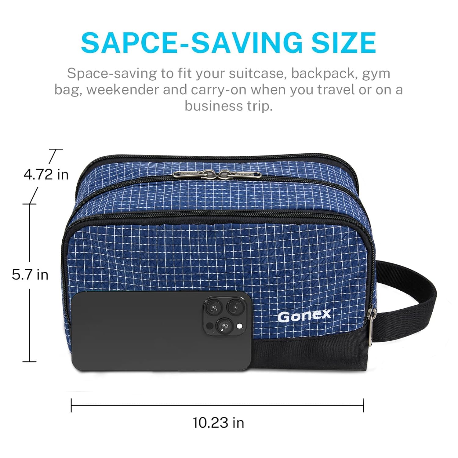 Gonex Travel Toiletry Bag Nylon, Shaving Bag Toiletry Organizer Check Patten (Navy Blue)