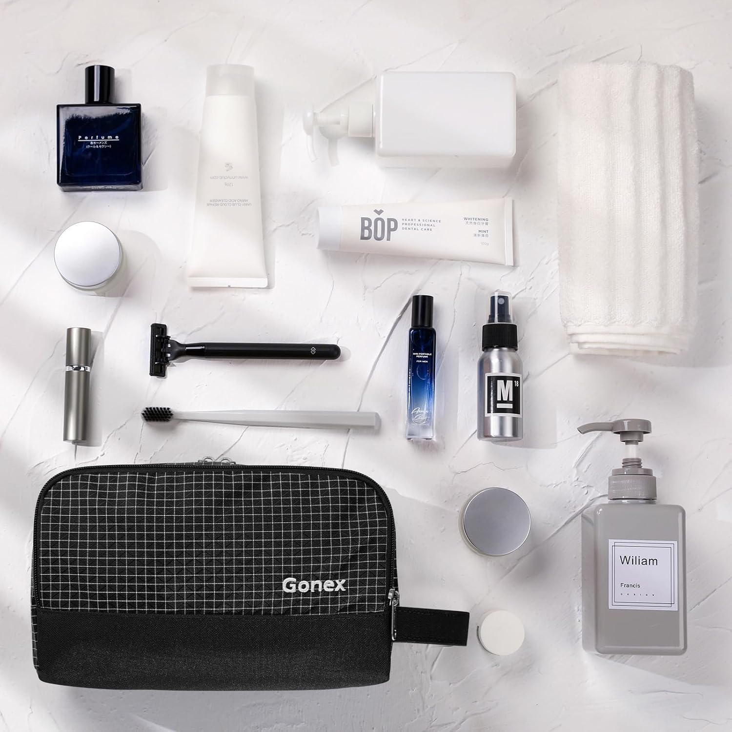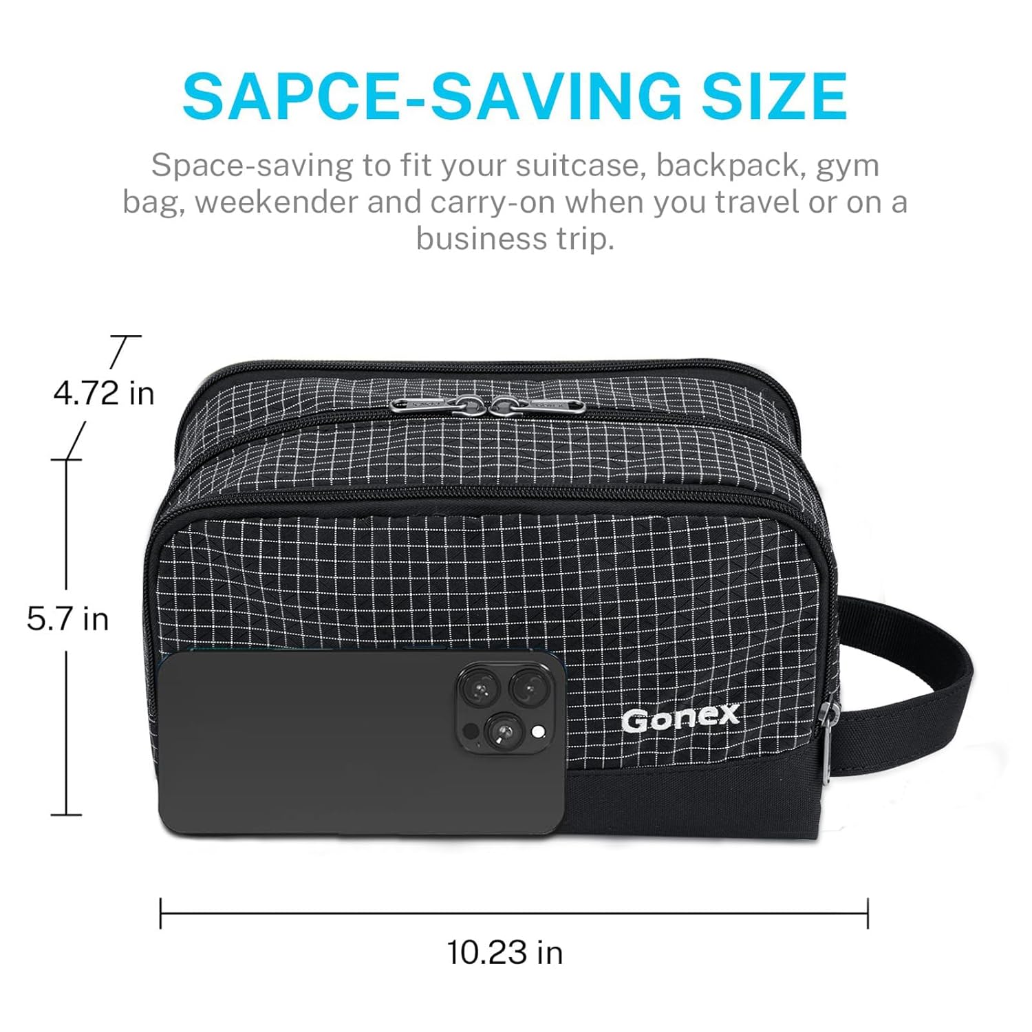 Gonex Travel Toiletry Bag Nylon, Shaving Bag Toiletry Organizer Check Patten (Black)