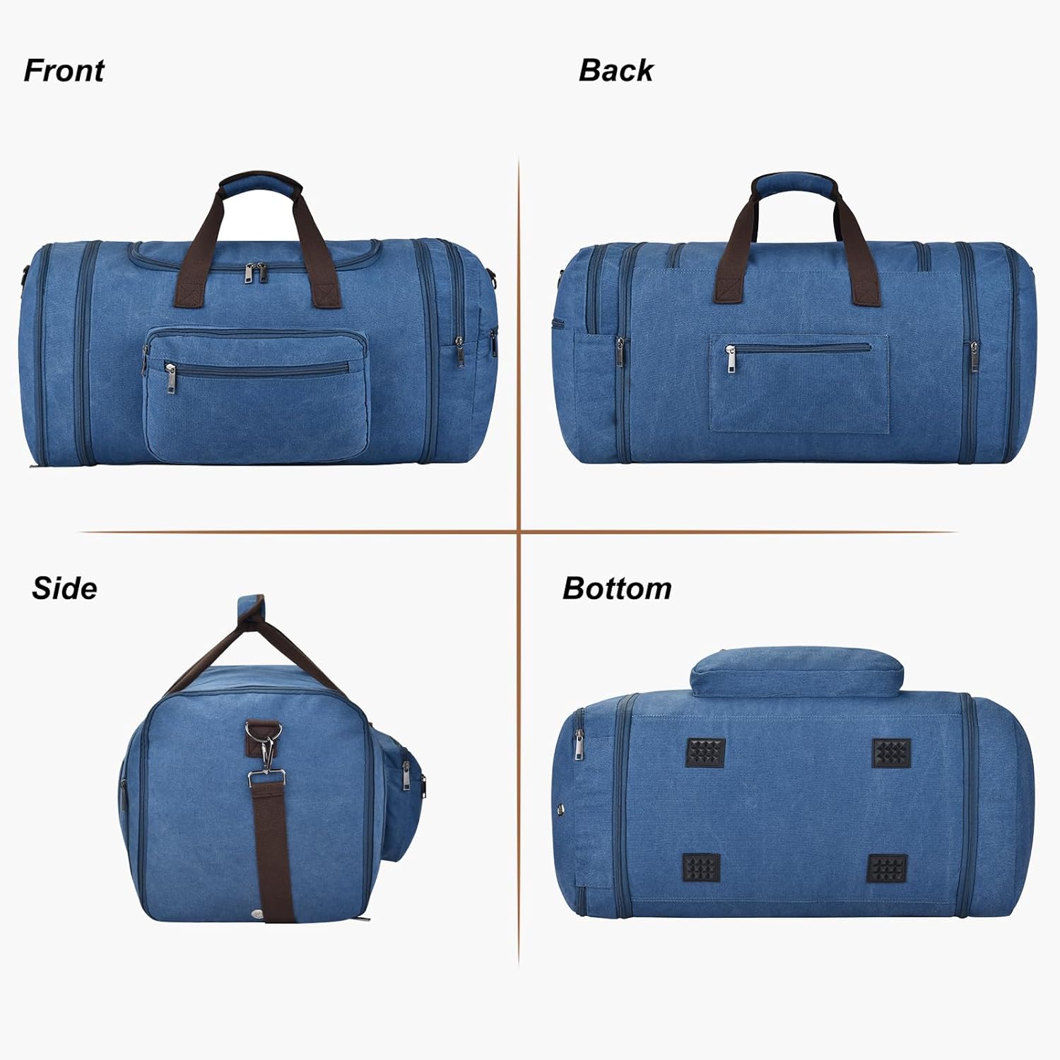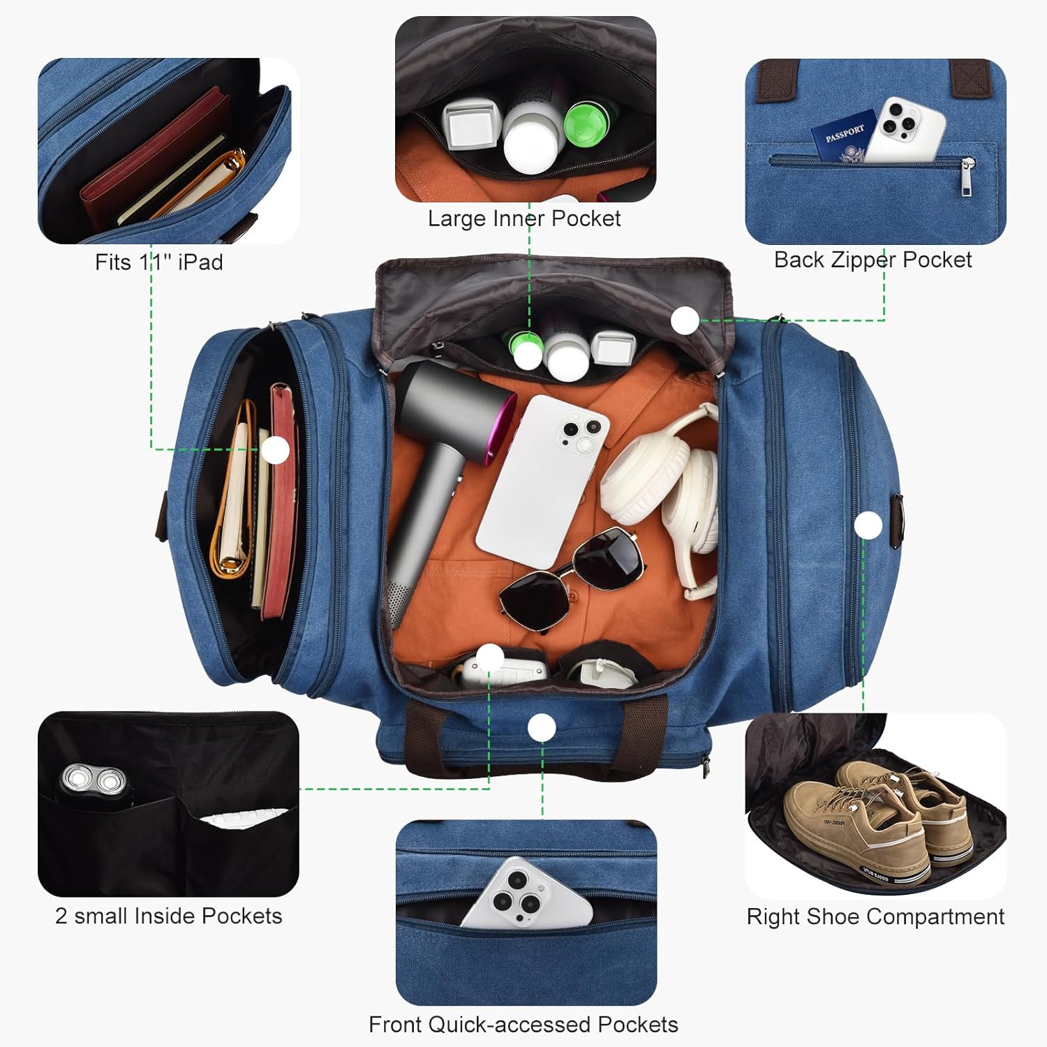Felipe Varela 60L Duffle Bag for Men, Large Expandable Canvas Duffel Bag for Travel, Mens Carry On Luggage Bag Traveling Weekender Gym Overnight Bags for Airplanes, Blue