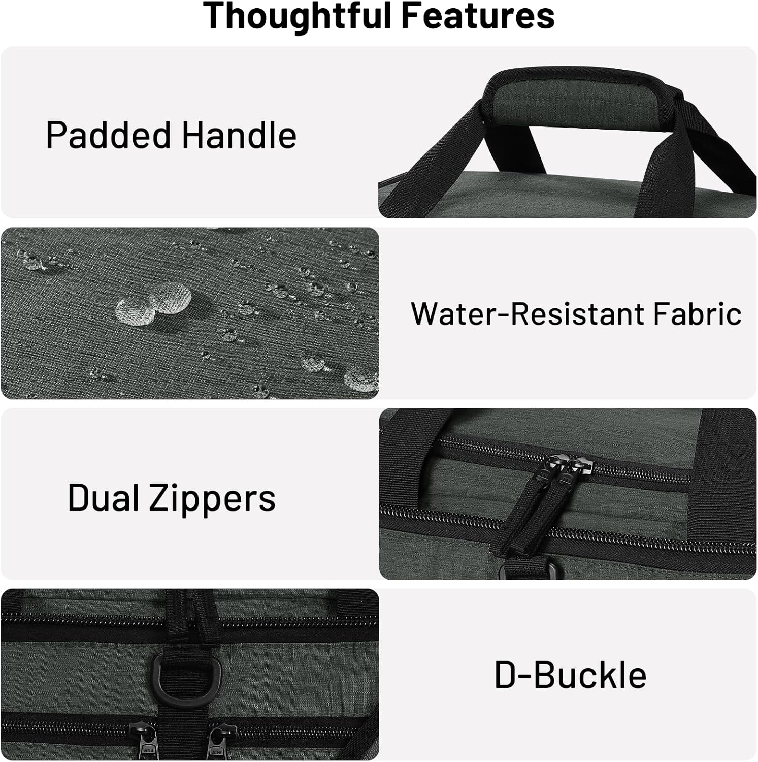 • Lightweight & Durable: Made of water-resistant, tear-proof fabric with smooth-gliding zippers. Padded handle and a detachable adjustable shoulder strap ensure comfort. A side handle provides multiple carrying options
