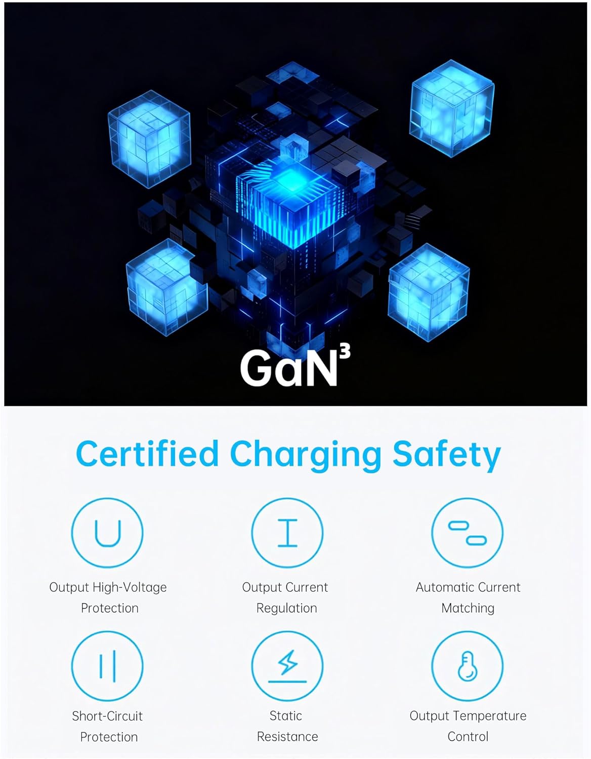 • Turbo GaN III Charging - Faster & Cooler: Featuring the latest GaN III and PD 3.0 technologies, this 140W fast charger delivers high-power output while featuring rapid heat dissipation to protect devices from overheating, ensuring long-term durability and device safety. Engineered to run 45% cooler than other charging station—perfect for back-to-back Zoom days without overheating nightmares.