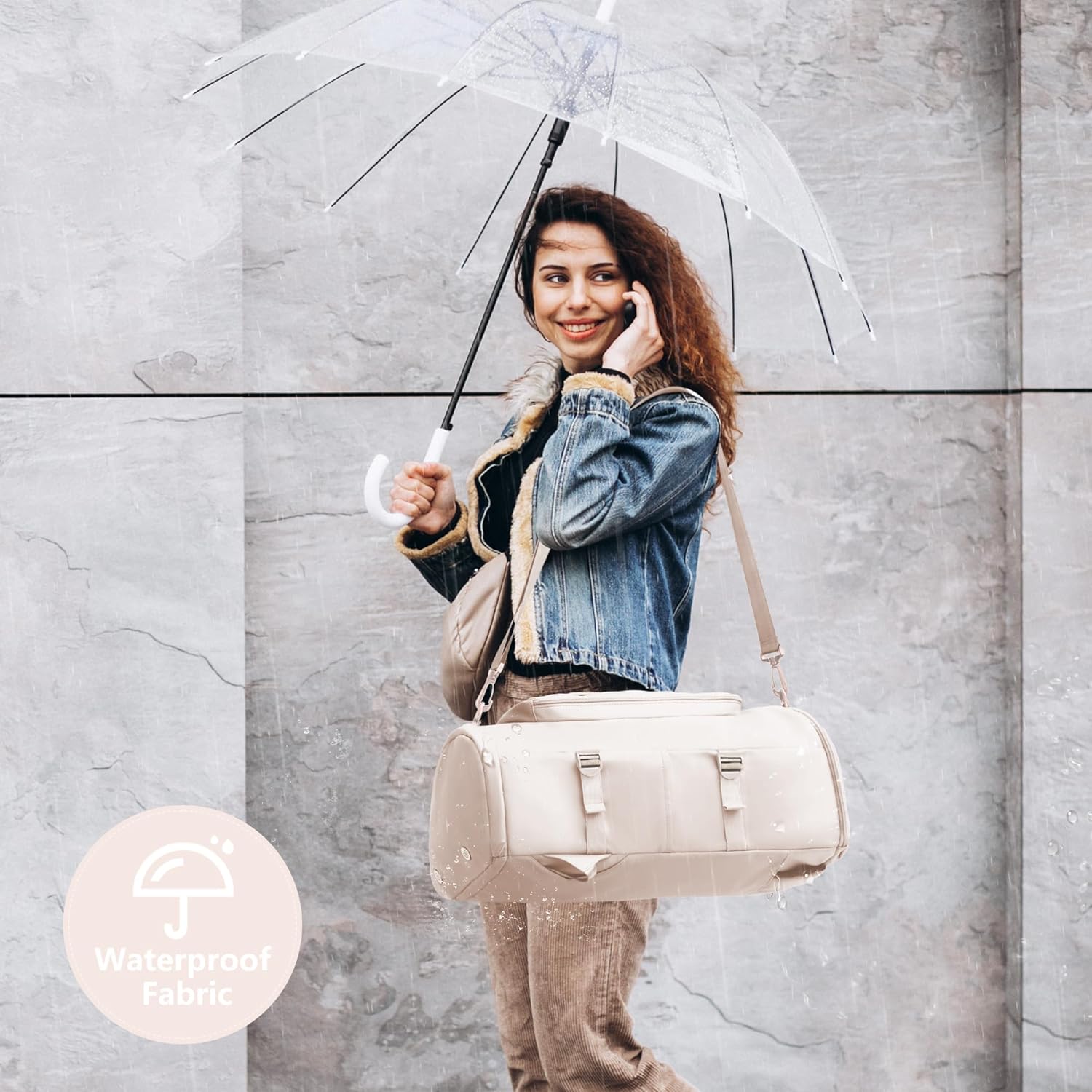 • Waterproof & Wrinkle-Resistant Fabric: Even in the rainy days, you do not have to worry about wetting this weekender overnight bag. This duffel bag's fabric is well performed in anti-wrinkle, even if the travel backpack is squeezed by other heavy items for one year, you will not find wrinkles when you use it again