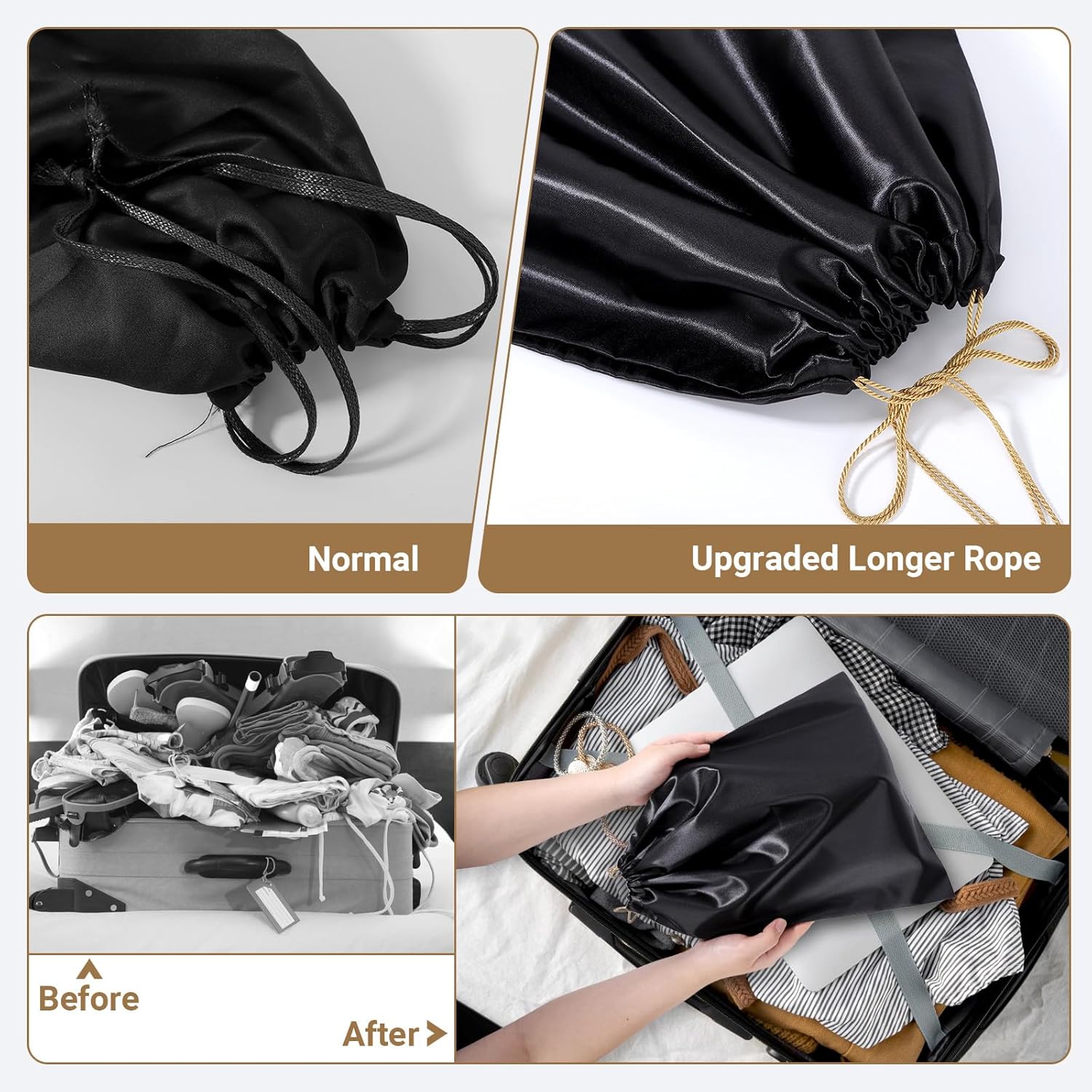 • Dust-proof Drawstring Design: Each dust bag features a sturdy gold drawstring for secure closure of your luggage during travel and outdoor activity. The drawstring also make the bag more portable.