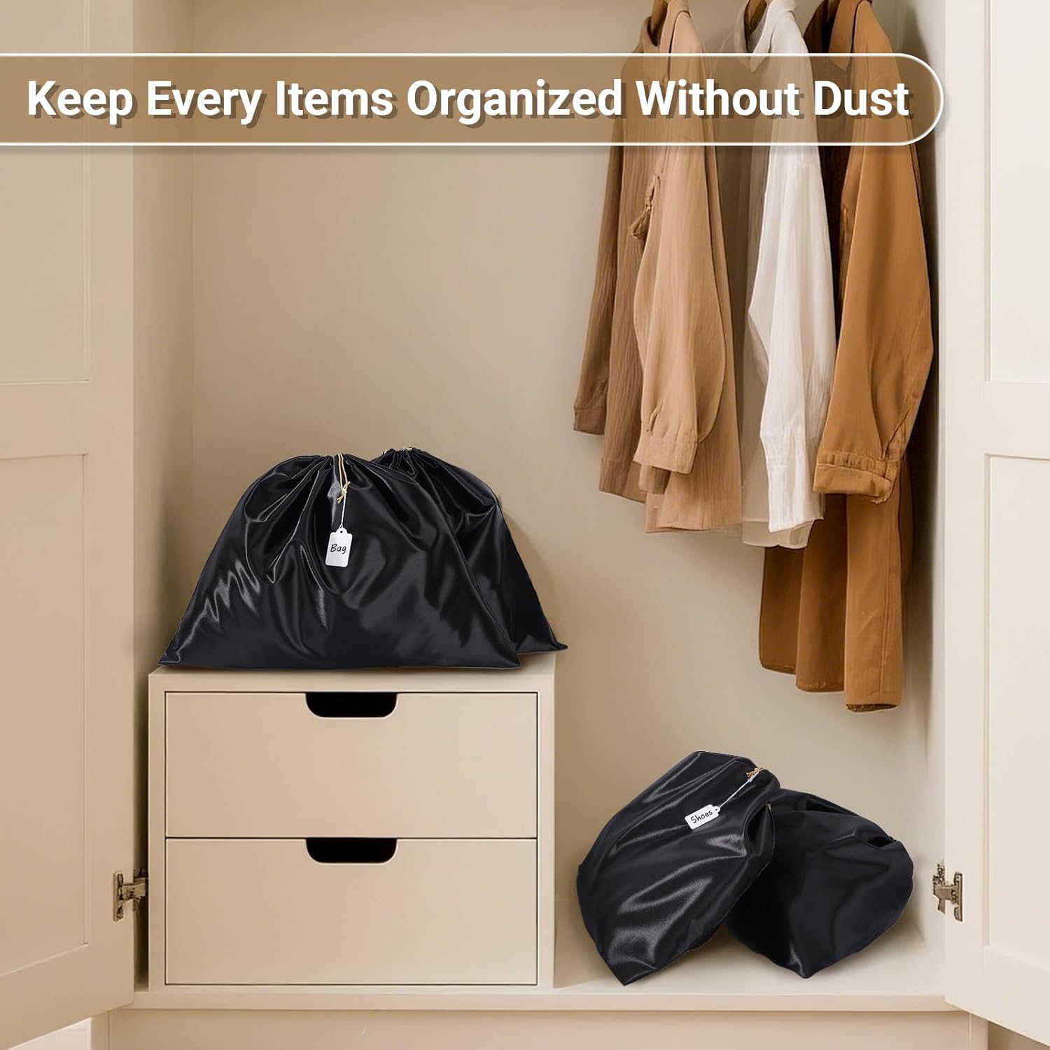 Ewen 19.6x15.7in Dust Bags for Handbags, 7 Pack of Black Dustproof Silk Bags with Drawstring for Travel, Purse Wallet Bags for Storage, Satin Covers for Shoes and Boots, Pouches Organizer for Closet