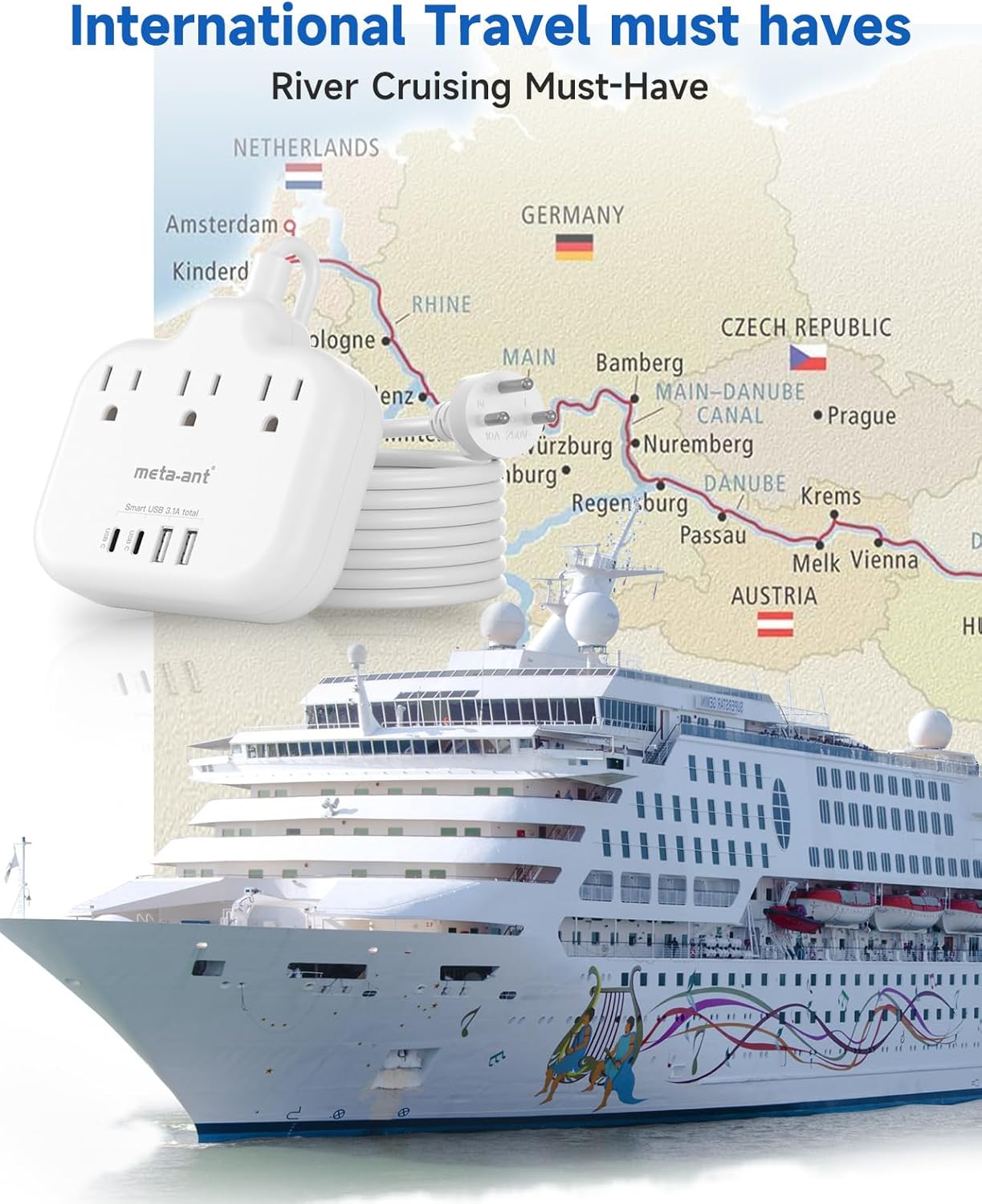 • 【5FT Thailand Extension Cord】This Meta-ant Thailand Travel Plug Adapter has a 5-foot extension cord, which is very convenient for centralized charging of electronics in offices, cruises, bedrooms, kitchens and college dorms