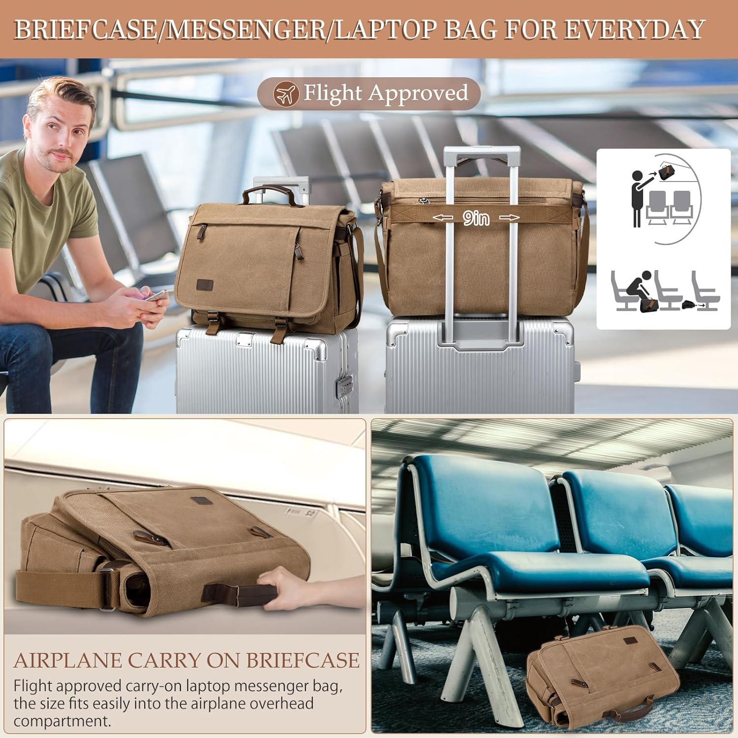 • [ ANTI-THEFT DESIGN & LUGGAGE SLEEVE ] Laptop briefcase is designed with 2 strong buckles on the flap and the zippered pocket is close to user which is secure for all your valuables. Designed for friendly airplane travel, this carry on bag with sleeve is perfect for carrying on board during air travel for men/women.