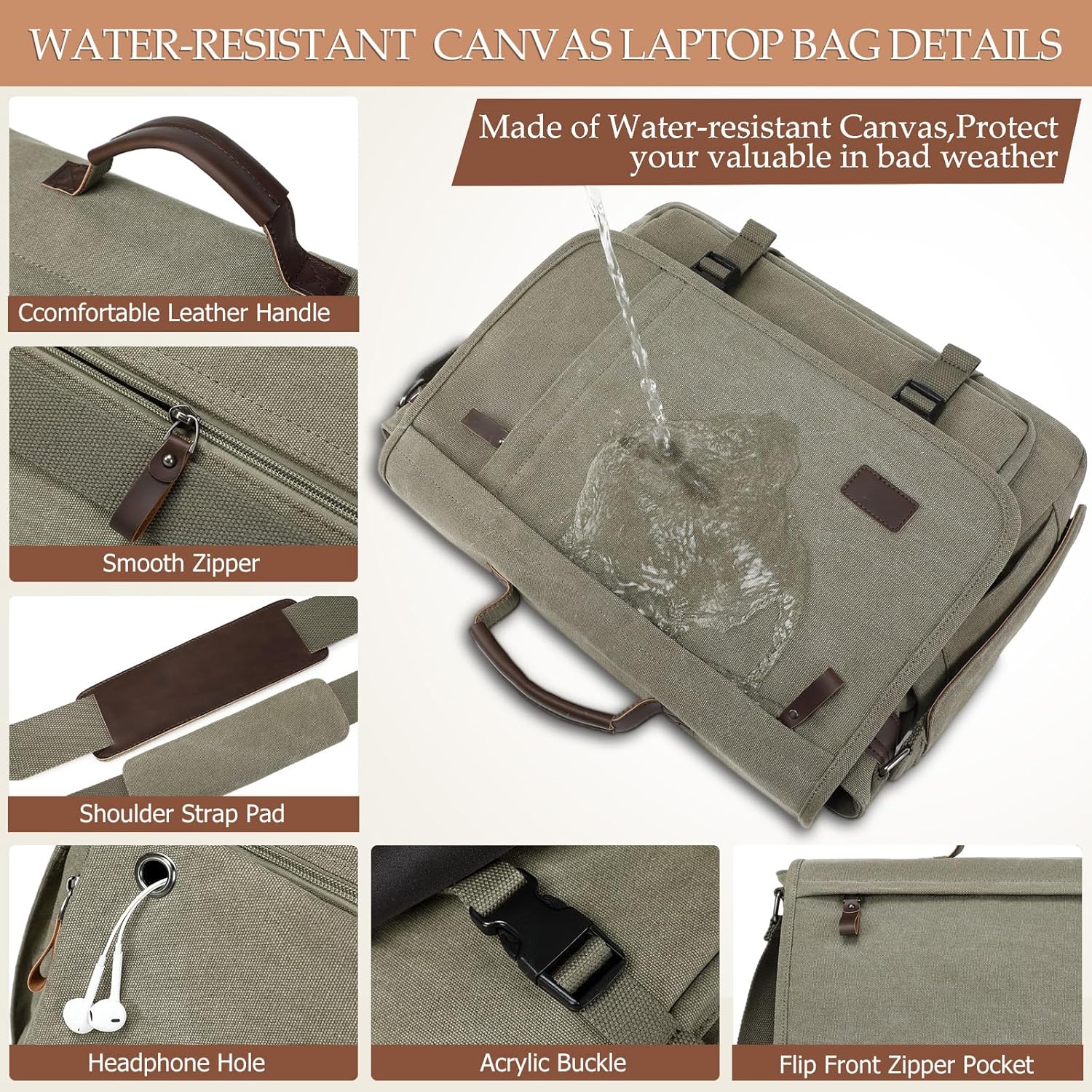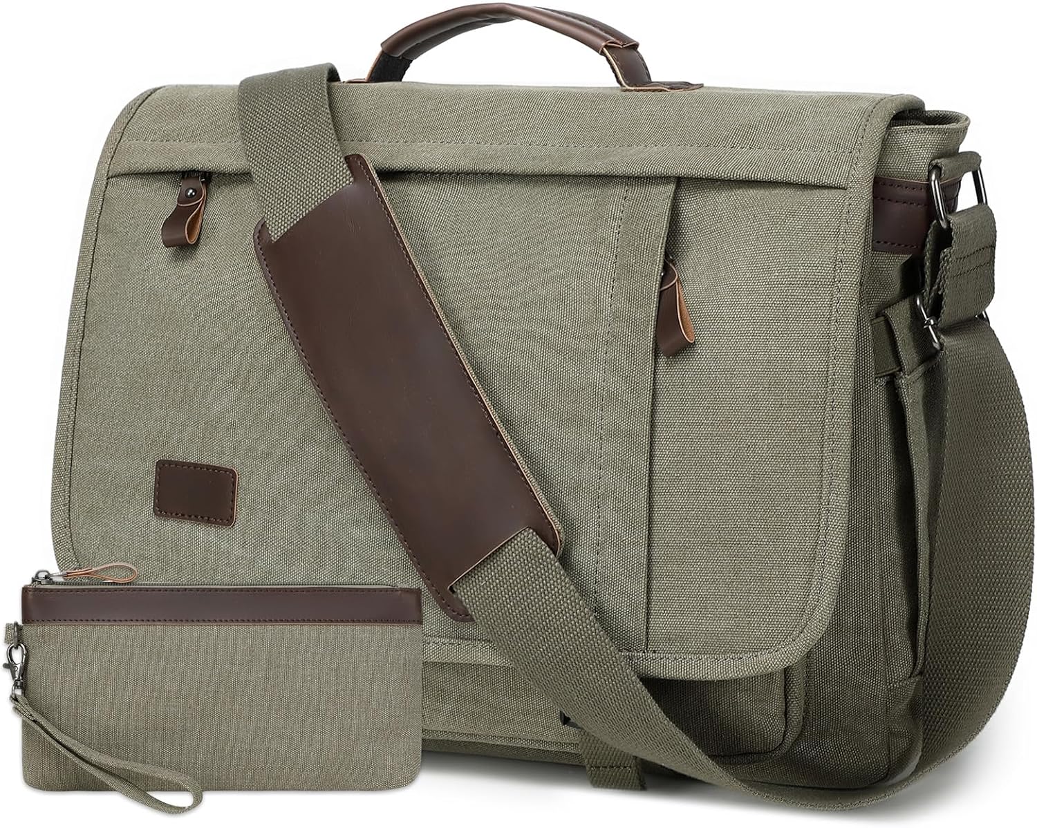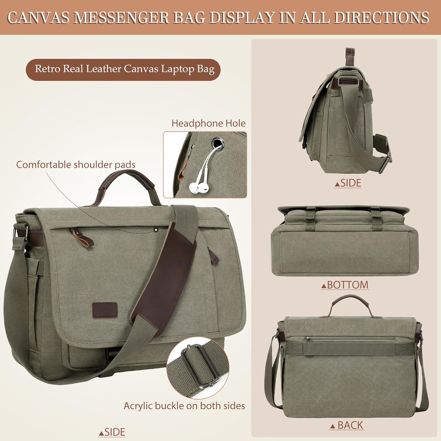 17.3 Inch Messenger Bag for Men: 2PCS Laptop Bag PU Leather Canvas Work Briefcase Large Office