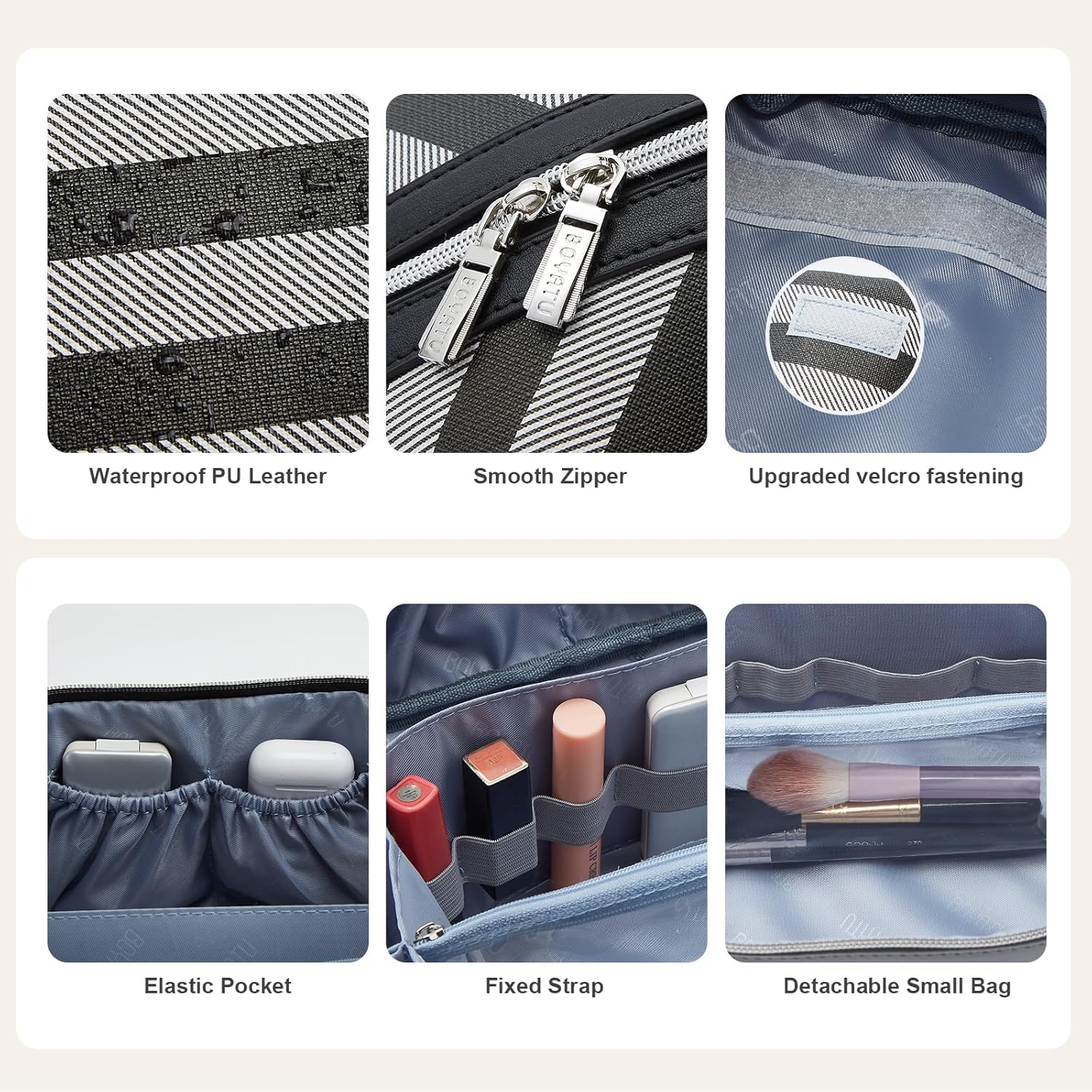 • 3 Pcs Makeup Bags Set: This travel cosmetic bags set comes with two detachable zipper small bags. Five precision-crafted compartments keep skincare and cosmetics flawlessly sorted, designed for seamless transitions between travel, business trips, outdoor adventures, and leisure escapes.