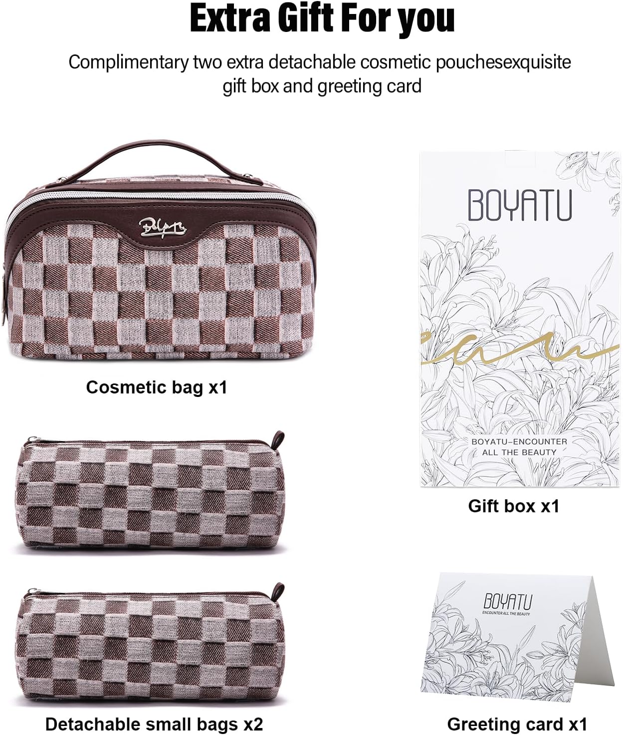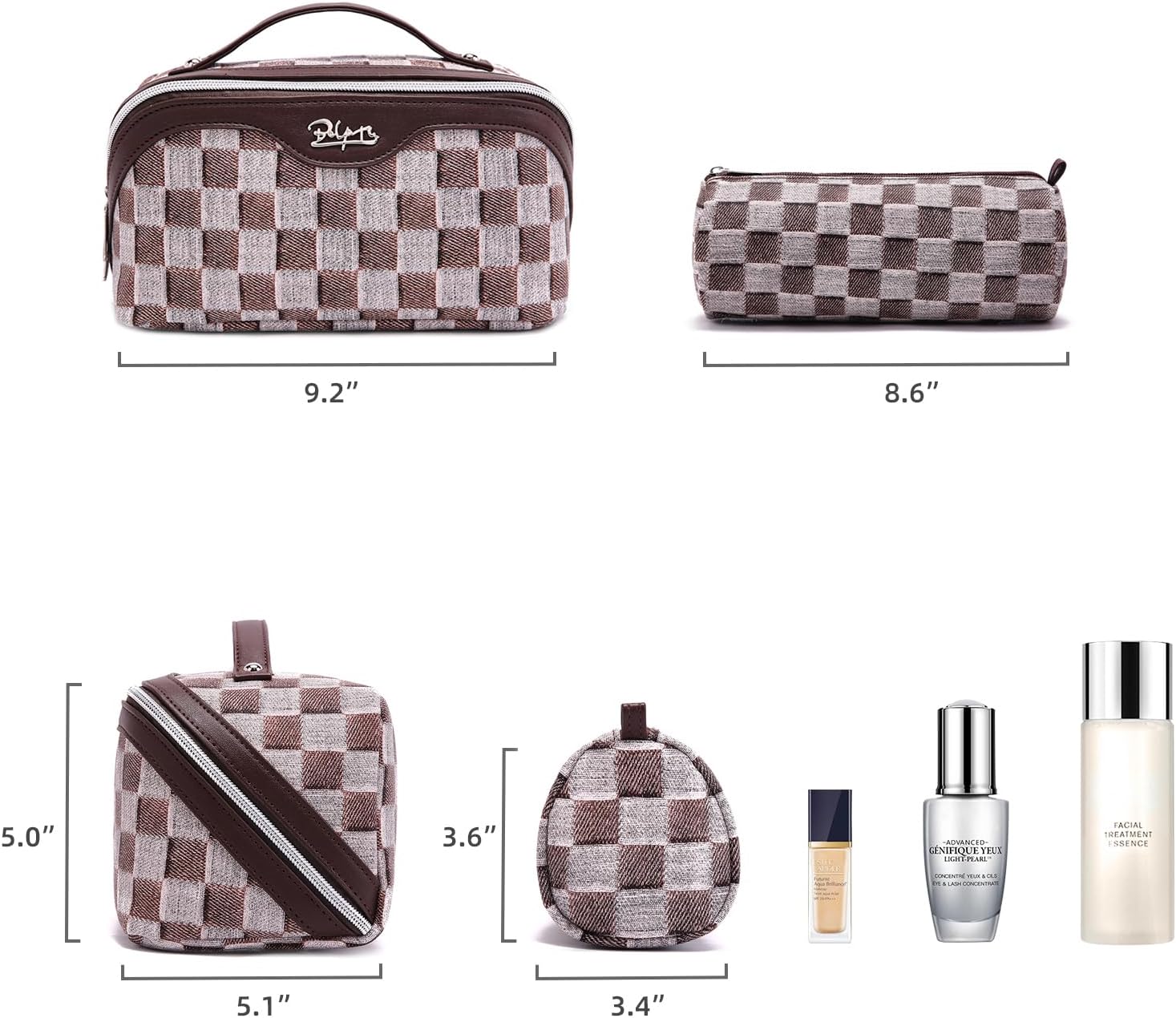 • Checkered Makeup Bag Set of 3: This travel makeup bag set includes three versatile bags, each designed with unique checkered patterns. The set features two detachable zipper storage bags and multiple compartments, providing optimal organization for your skincare products and cosmetics. Perfect for travel, daily use, and special occasions.
