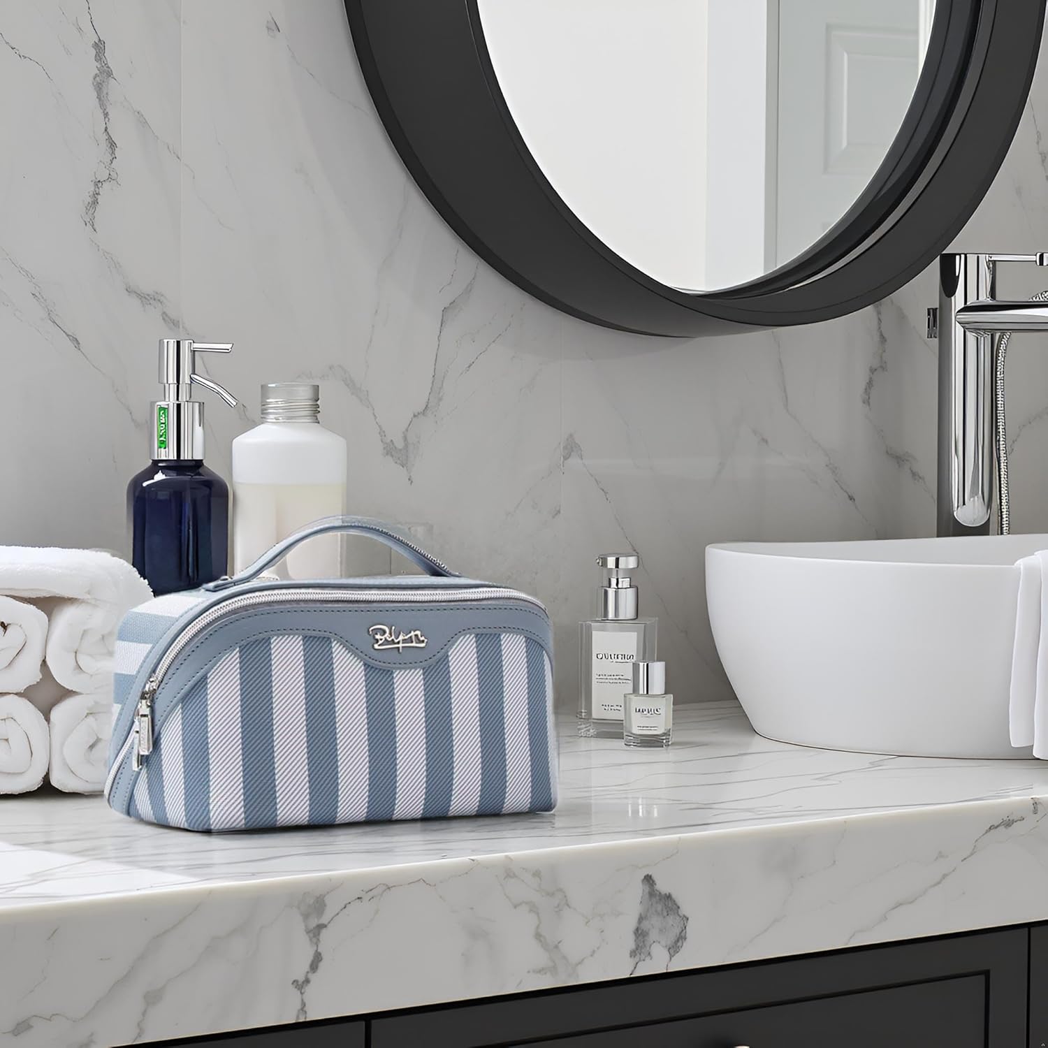 • Trendy Makeup Bag for Women: This make up bag is made of premium PU leather, soft to the touch, Waterproof & Durable & Stylish. Simple Stripes appearance design will bring you countless awesome compliments. BOYATU travel cosmetic bag is a great choice and ideal companion for you.