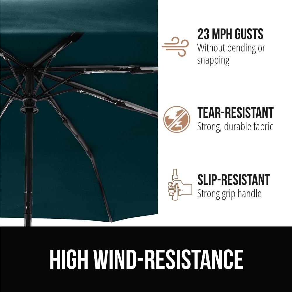• HEAVY DUTY WIND RESISTANCE AND UV PROTECTION TESTED: the Gorilla Grip Umbrella is built for all weather durability; constructed with 8 reinforced fiberglass ribs and a tear-resistant canopy, the umbrella can tackle high winds without bending or snapping; windproof up to gusts of 23 mph; rust resistant for long lasting use, dry completely before storing; provides protection from harmful UV rays up to 20 UPF