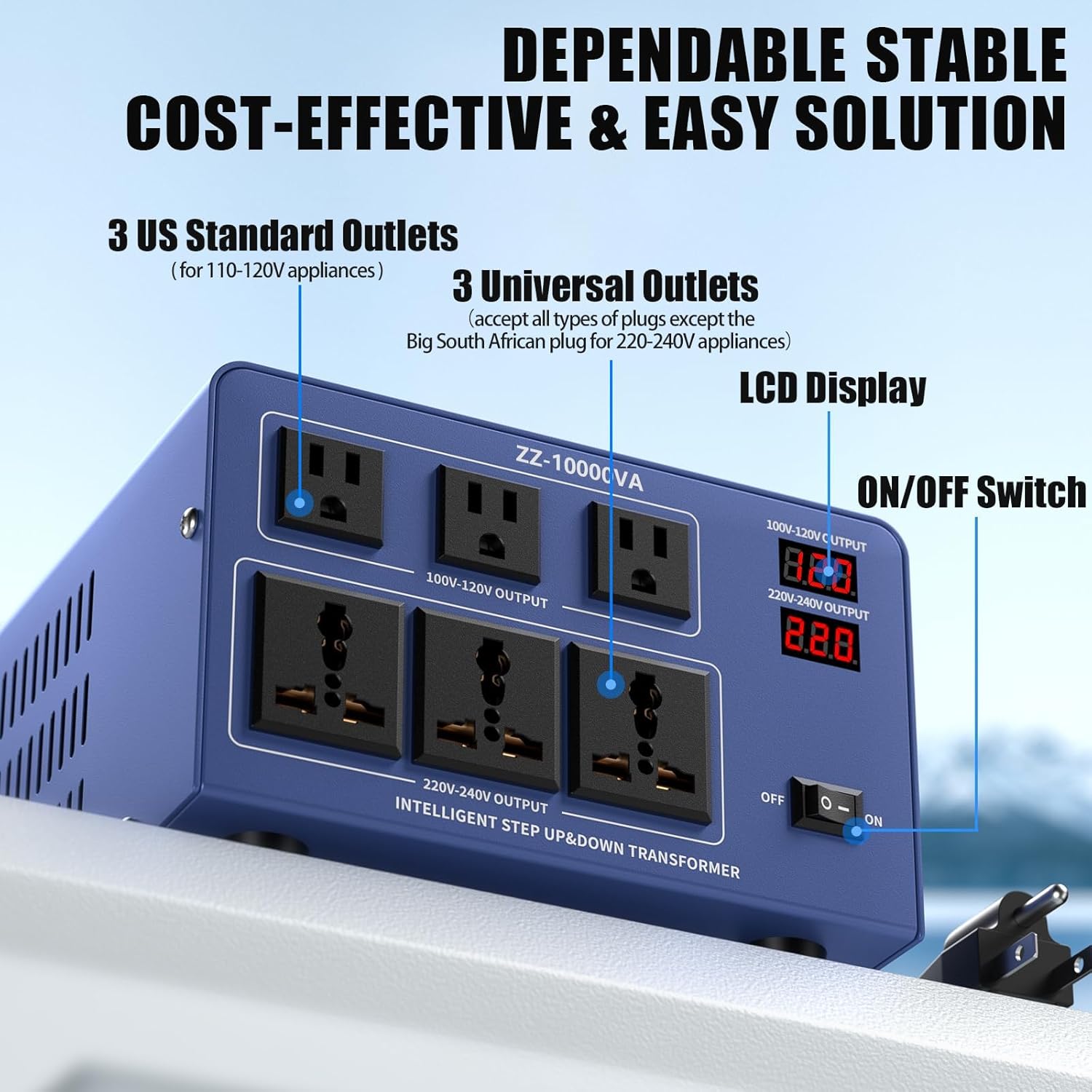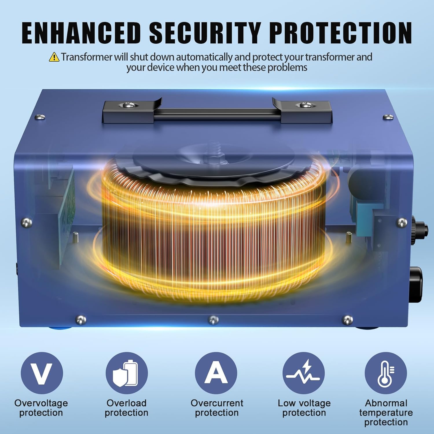 10000W Voltage Converter Auto Transformer,110/120/220/240V Heavy Duty Step Up/Down Power Converter Transformer with 3 US Outlets,3 Universal Outlets, LCD Display,Resettable Circuit Breaker Protection