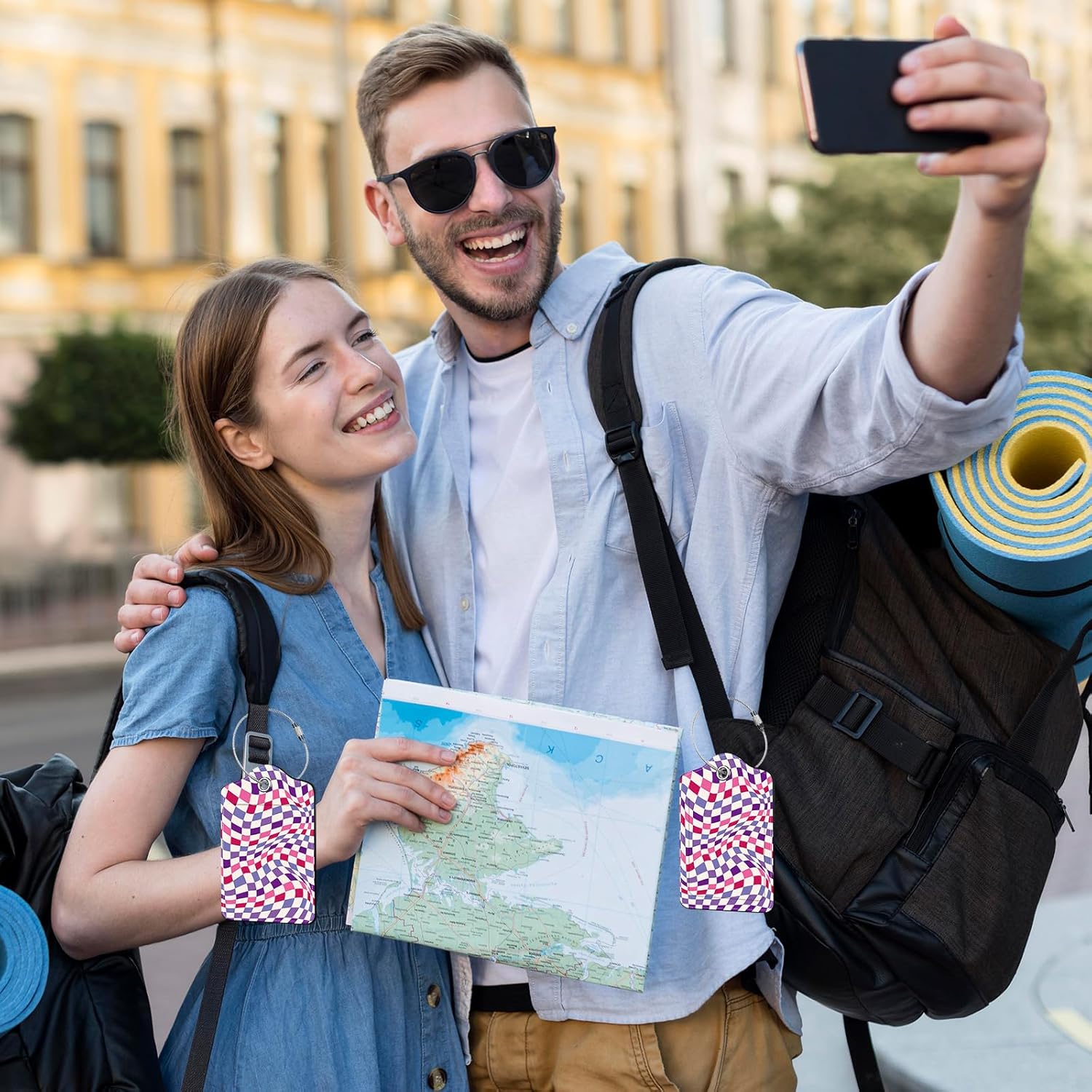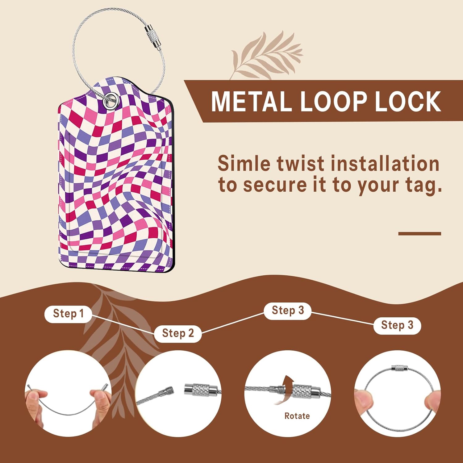 2 Pack Checkered Luggage Tags for Suitcases, Plaid Leather Luggage Tag Waterproof, Name ID Labels with Privacy Cover Suitcases Bag Luggage Tags for Travel, Travel Accessory Luggage Tag
