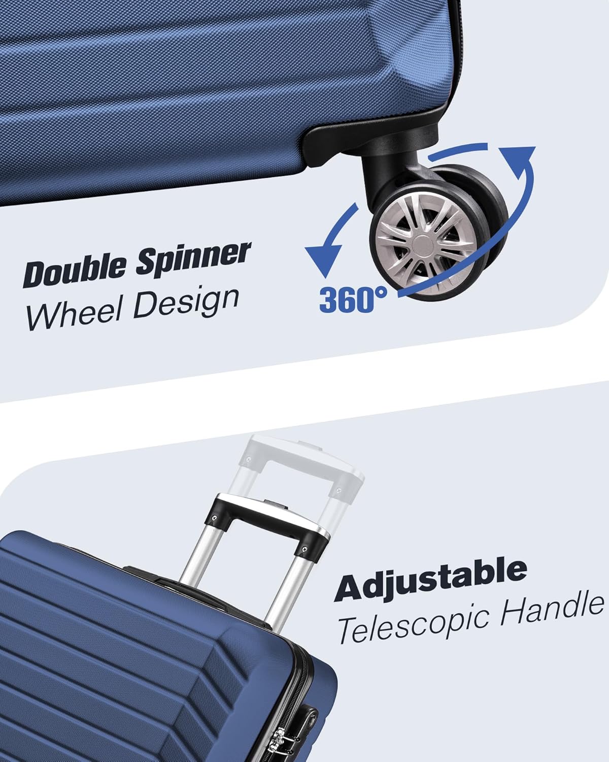 • 8 Smooth Rolling Silent Wheels: Hard luggage sets with spinner wheels roll 360 degrees, making it easy to change directions. The durable all-iron handle easily extends and retracts to 3 different heights and features a comfortable TPR grip