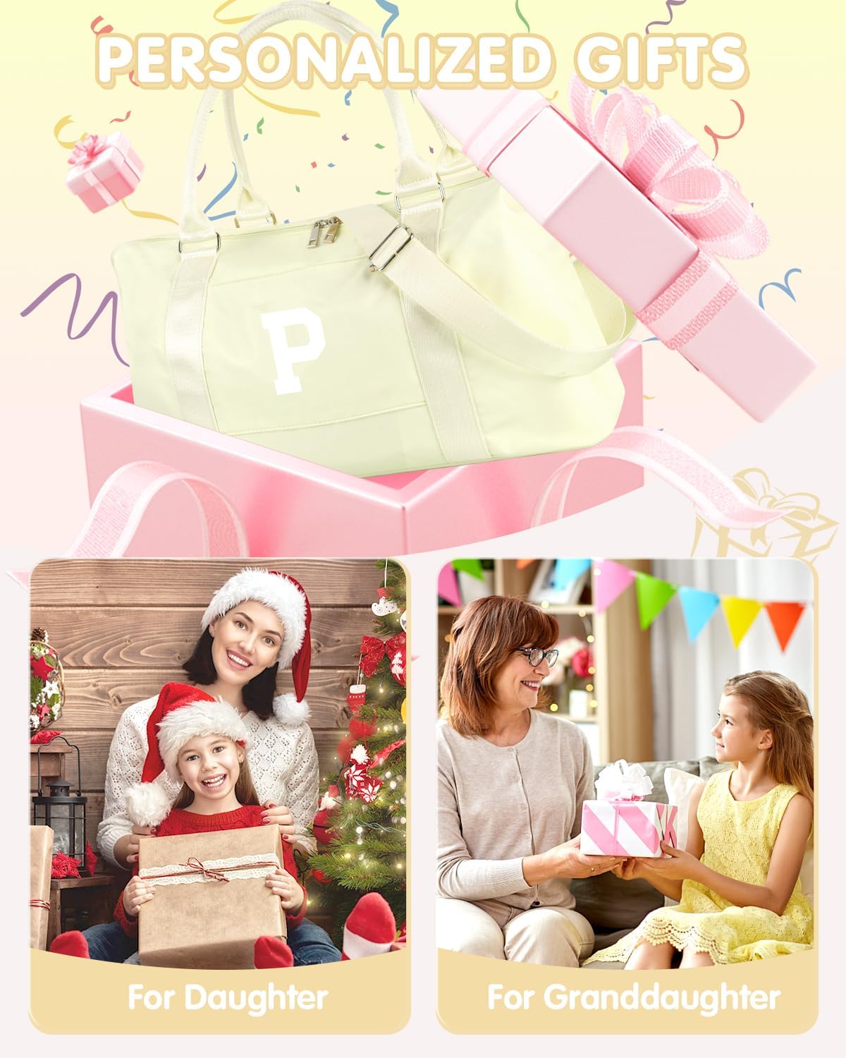Initial Travel Duffel Bag Sports Gym Bag for Kids Teen Birthday Gifts,Beige Personalized Weekender Bag Carry On Dance Bags for Women Men,Waterproof Monogram Overnight Bag with Trolley Sleeve(Letter P)