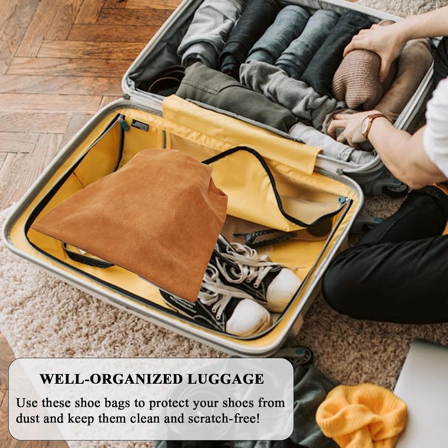 LAKE OF FIRE 4-Piece Travel Shoe Bags for Packing, 17.7" x 13.8" Dustproof Shoe Bags - Flannel Shoe Pouch with Drawstring Closure,Washable & Reusable(Brown)