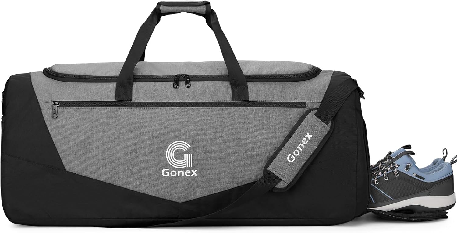 Gonex Gym Duffel Bag with Shoe Compartment Wet Pocket, Large Capacity Sports Duffle Bag for Men Women, Workout & Travel Bag with Multiple Pockets, Black/Gray, Large (100L)