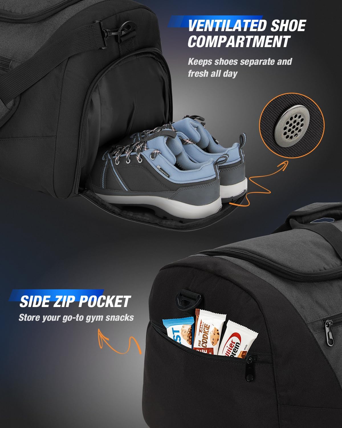 Gonex Gym Duffel Bag with Shoe Compartment Wet Pocket, Large Capacity Sports Duffle Bag for Men Women, Workout & Travel Bag with Multiple Pockets, Black, Medium (60L)