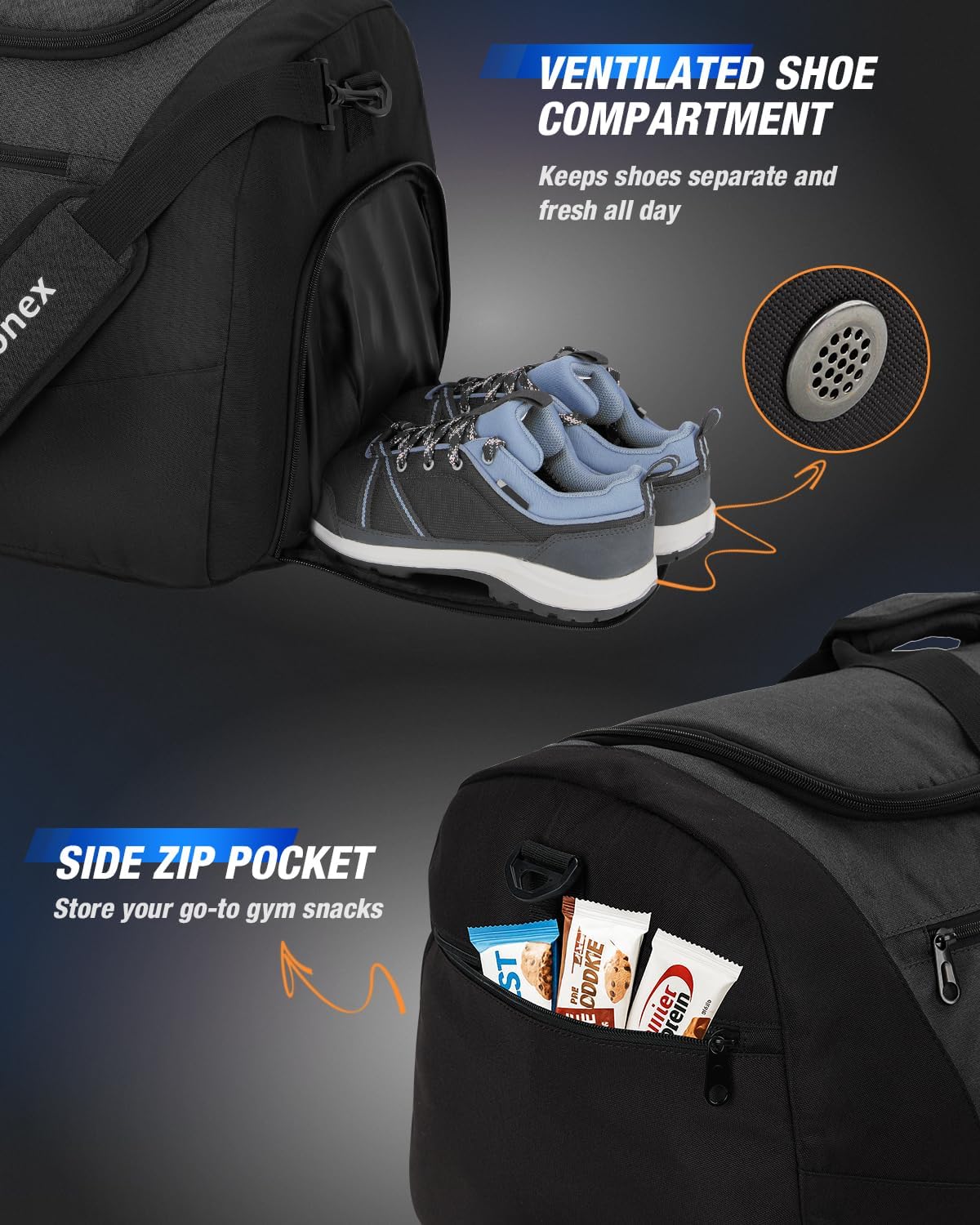 Gonex Gym Duffel Bag with Shoe Compartment Wet Pocket, Large Capacity Sports Duffle Bag for Men Women, Workout & Travel Bag with Multiple Pockets, Black, Large (100L)