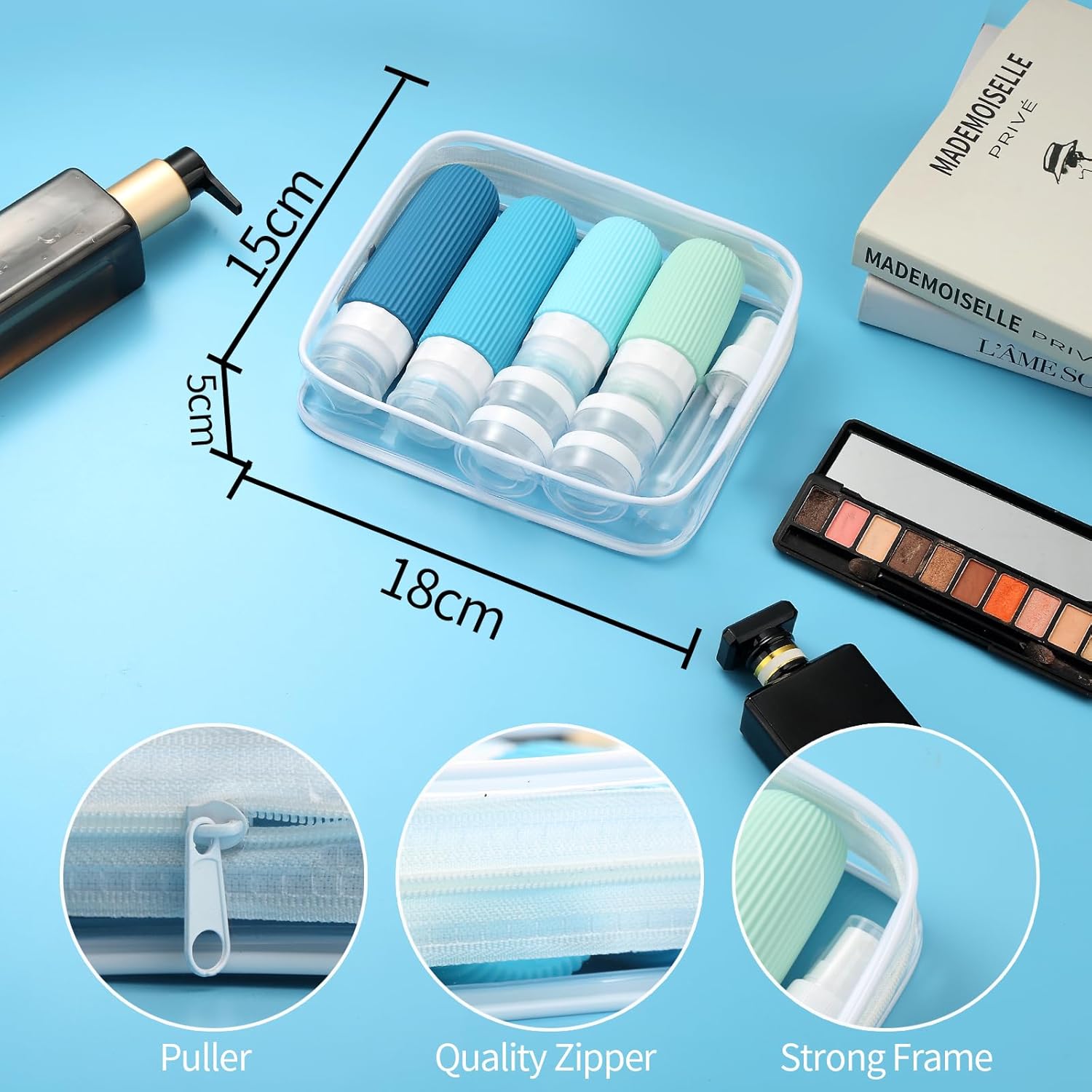 • Useful Travel Accessories: This is a nice assortment of travel containers in a useful zip case. ( Come in 4 Travel Bottles+4 Travel Jars+2 Spray Bottles+2 Scoopers+1 Funnel+1 Clean Brush + 1 Page Label + 1 Clear Toiletry Bag ) Multiple ones allow you take along different beauty products and toiletries according to your requirement