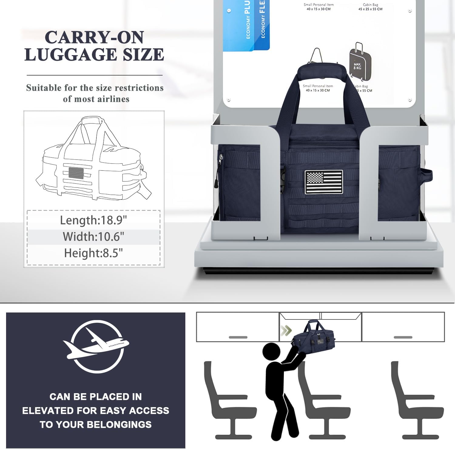 • Flight Friendly Size: The carry on bag dimension is 18.9*8.5*10.6inch, meet the flight regulations and requirements for carry on luggage, it fits perfectly in the overhead compartment. The 3 back portable pockets can hold your phones, ID cards or passports. This travel bag is the perfect companion for your short-term travel.