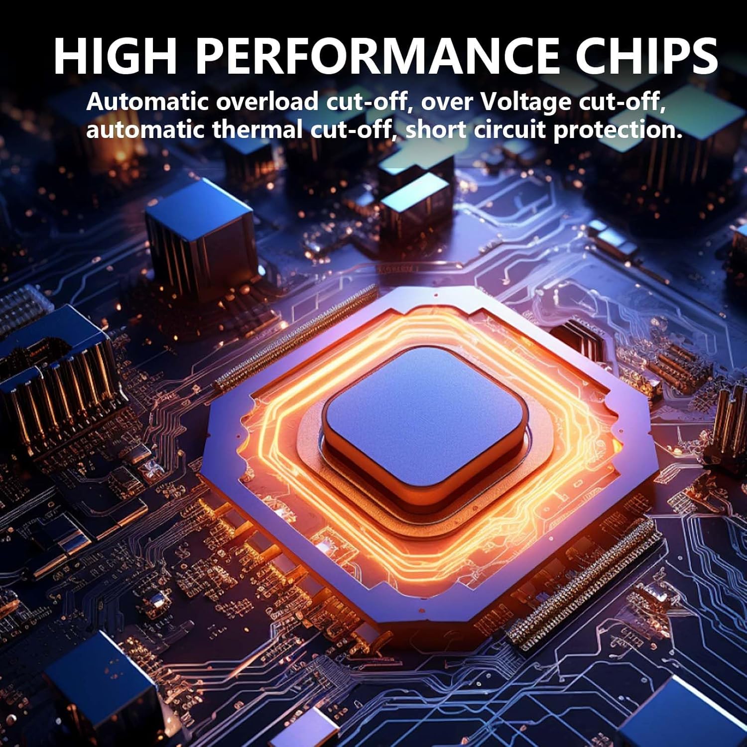• Smart protection: Automatic overload cut-off, over Voltage cut-off, automatic thermal cut-off, short circuit protection.
