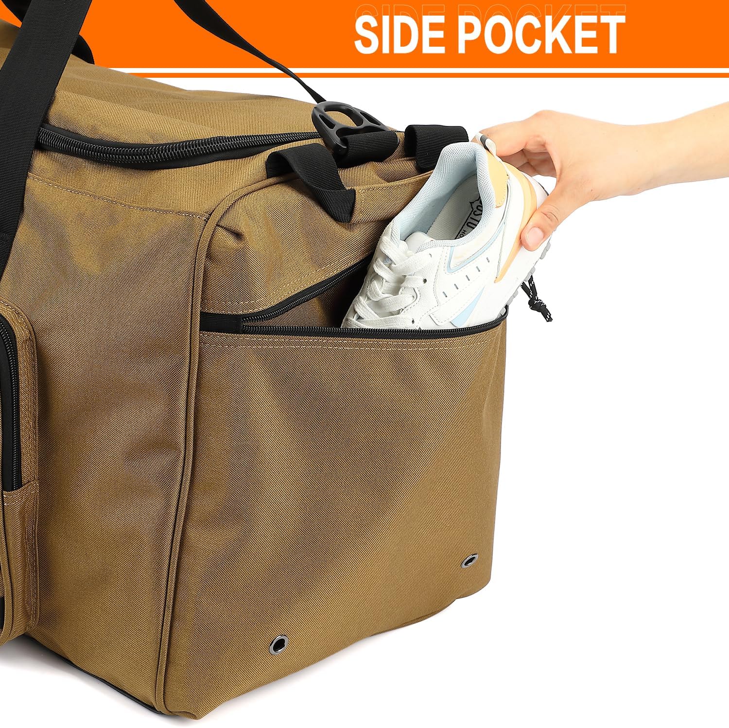 • Tactical Duffel Bag with Big Capacity: Our large weekender travel bag has a size of 32 x 15 x 16 inches and with capacity of 125 liters. With multiple compartments including a ventilated shoe compartment, a side pocket, two front zippered pockets, a inner pocket, and one card slot for organized packing during travel or sports activities.