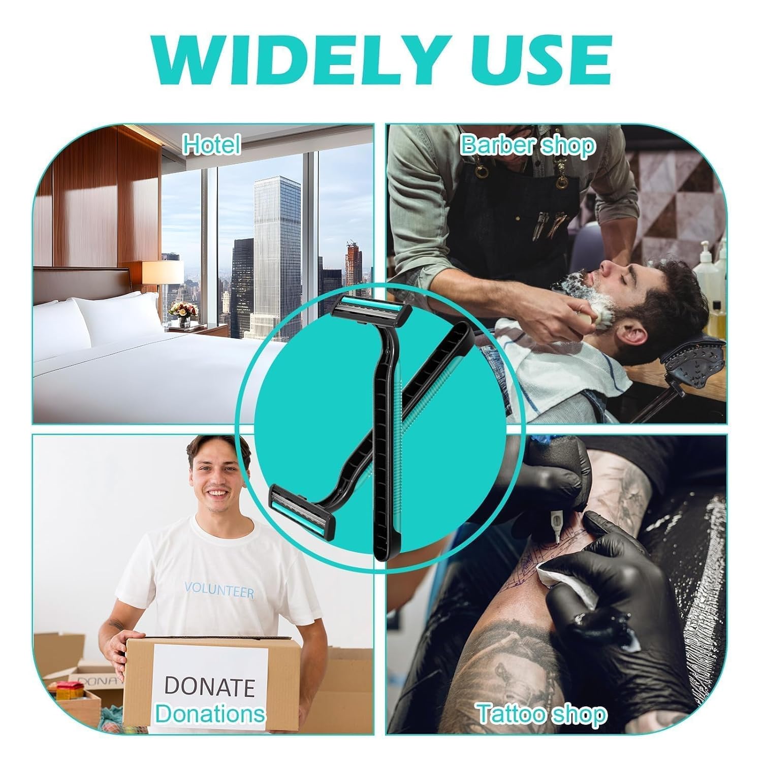 • Disposable razors, throw away when used up, suitable for tattoo parlors, hotel, short-term rental, homestay and travel. Economically priced to donate to homeless, shelters, charity, church groups and more