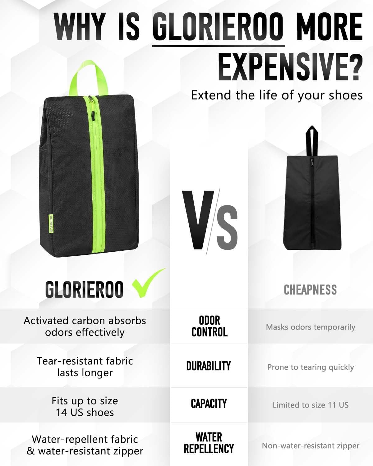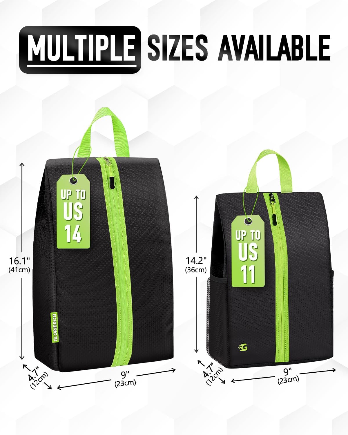 • Large Capacity & Lightweight: Weighing just 5.6 oz, the bag measures 16.1" x 9.1" x 4.7", fitting shoes up to US size 14. It easily fits into luggage, backpacks, or duffel bags, keeping your belongings or car trunk clean from dirt caused by shoes