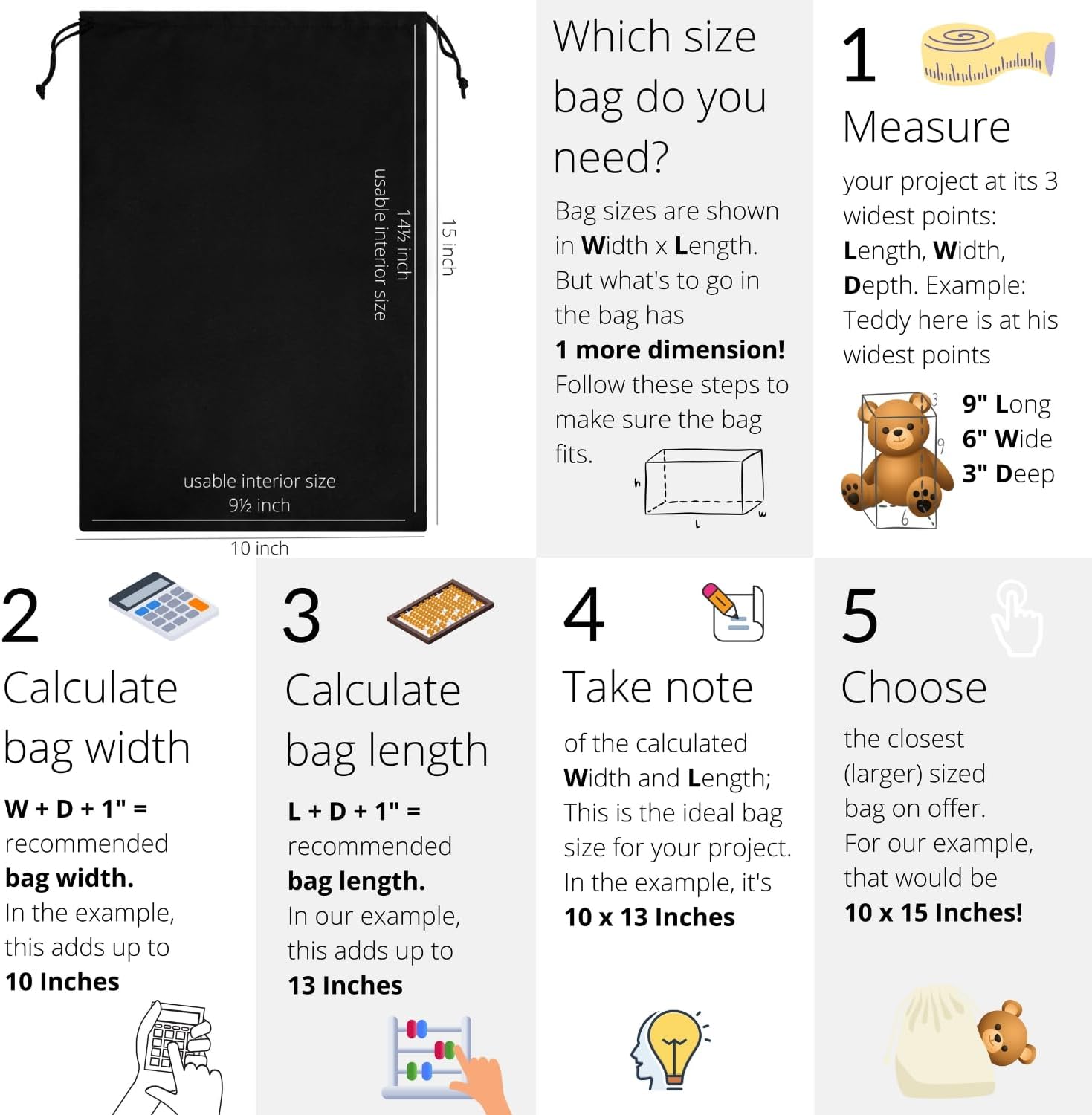 Premium Microfiber Drawstring Bags (Set of 5) – Multipurpose Travel Storage Pouches for Cords, Toiletries, Jewelry, Shoes – Durable Organizer with Strong Drawstring Closure (Black, 10 x 15 Inches)
