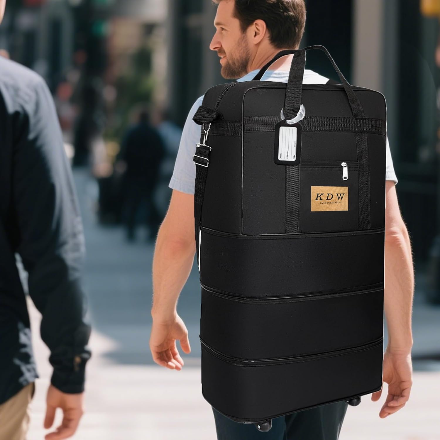 Foldable Travel Bag with Wheels, Extendable Tote Bag, Roller Expandable Luggage Compartment, Large Capacity Lightweight Luggage Bag, Waterproof for Men and Women(Black)