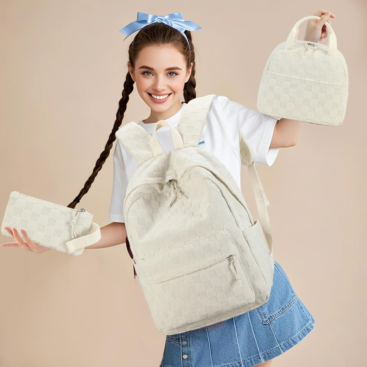 • 3 in 1 Backpack Set : Girls school backpack set including Book bag--Size:17.3"x11.8"x5.5"(HxLxW), Insulated Lunch Box:8"x10"x7"(H*L*W), holds up to 14 inch laptop.