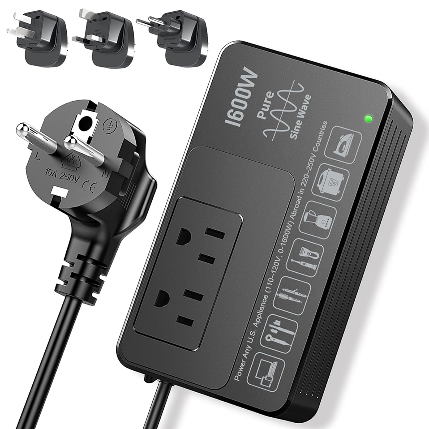 • 220V to 110V Voltage Converter: This 220v to 110v converter converts 220-250V down to a stale 120V pure sine wave, POWER ANY U.S. APPLIANCES (110-120V, 0-1600W) ABROAD in 220-250V COUNTRIES, such as CPAP machines, hair straighteners, curling irons, hair dryers, coffee makers, blenders, electric toothbrushes, and any home and kitchen appliances.